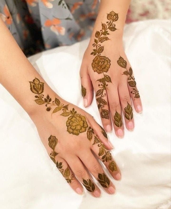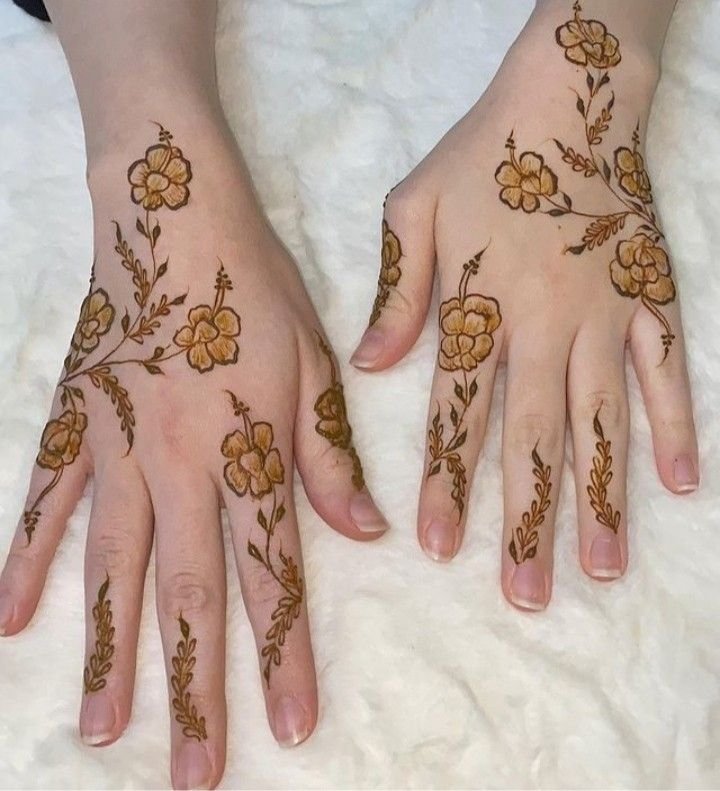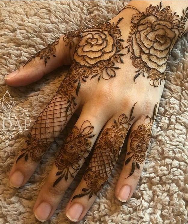Perfect for brides, these designs are elaborate and cover the full hand and feet. Large floral patterns, detailed petals, and shading create a stunning 3D effect.