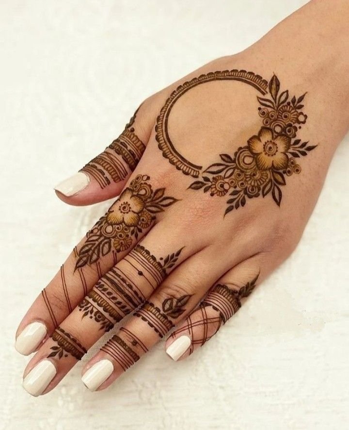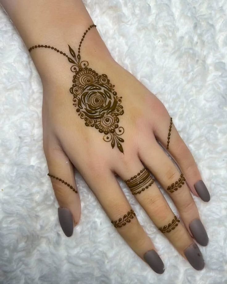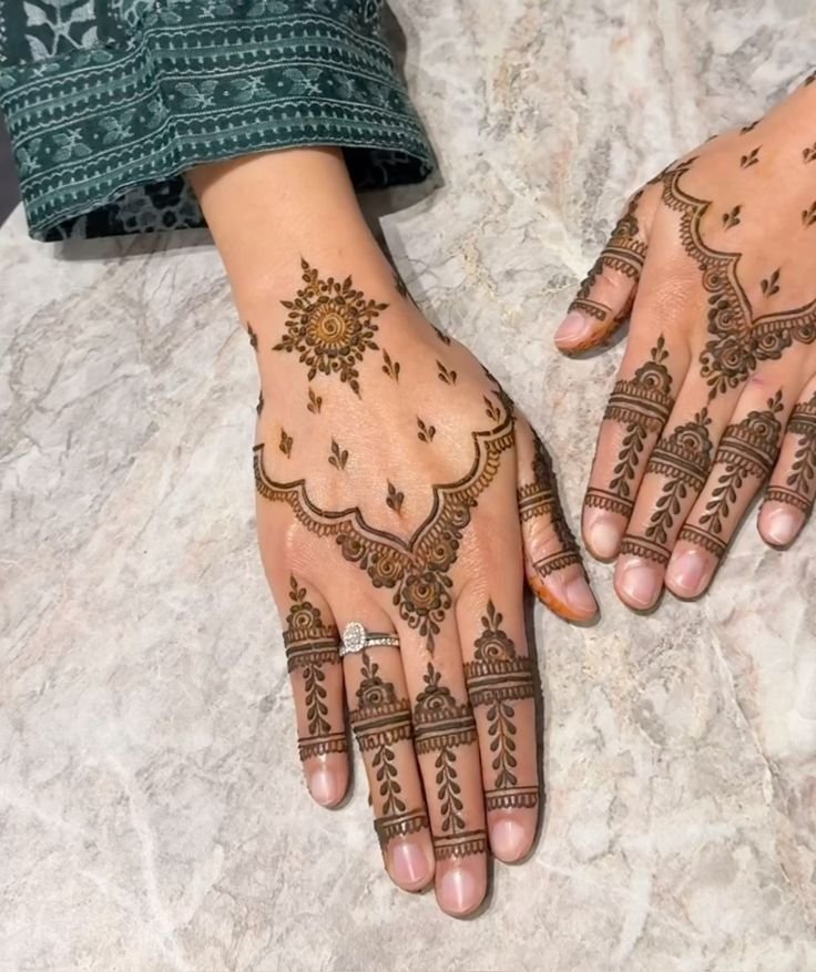 Aesthetic back hand mehndi designs are perfect for anyone who loves minimal beauty. These designs usually include small flowers, leaves, and thin trails that cover the fingers or the back of the hand gracefully. Simple back hand designs are ideal for everyday looks, college functions, or even casual family gatherings. They are quick to apply and look super clean — perfect for those who prefer elegance without being too bold.