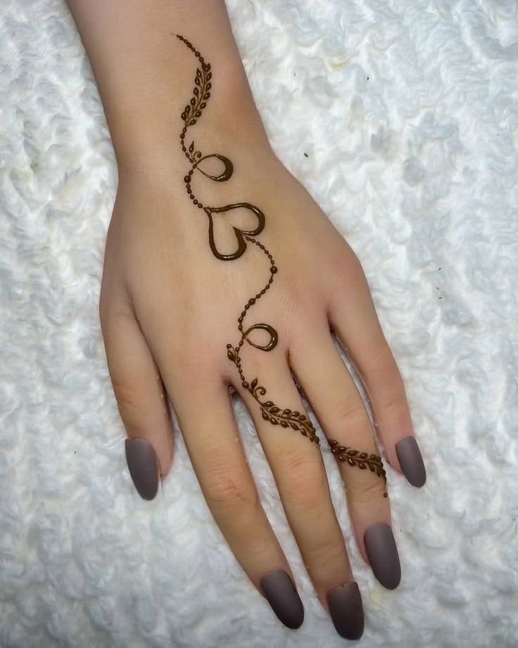 Korean-inspired mehndi designs are trending for their delicate and pastel-like patterns. These are usually inspired by Korean minimal art — soft curves, tiny hearts, and clean dots. The main idea is to keep the mehndi light, fresh, and very simple. Korean mehndi designs often match well with modern outfits and soft makeup looks, making them perfect for social media photos and casual celebrations.