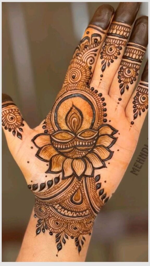 During Diwali, aesthetic mehndi designs bring festive joy to your hands. These designs often include diyas, stars, flowers, and elegant patterns that shine with traditional beauty. Simple Diwali mehndi keeps your hands light yet festive — perfect for matching with bright ethnic outfits. You can go for finger trails or half-hand patterns that make your look both graceful and festive.