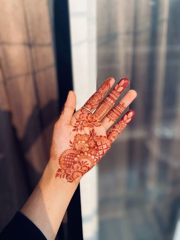 Girls love aesthetic front hand mehndi designs because they are easy to apply, look modern, and suit every age group. These designs match both traditional and western outfits and are comfortable to carry for long hours.