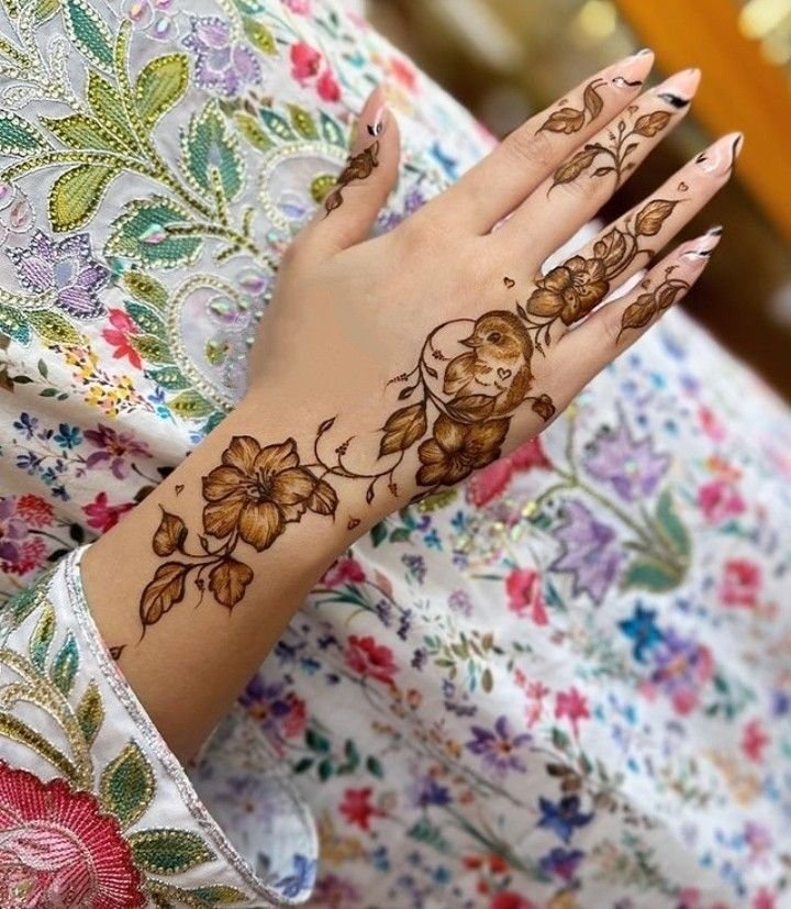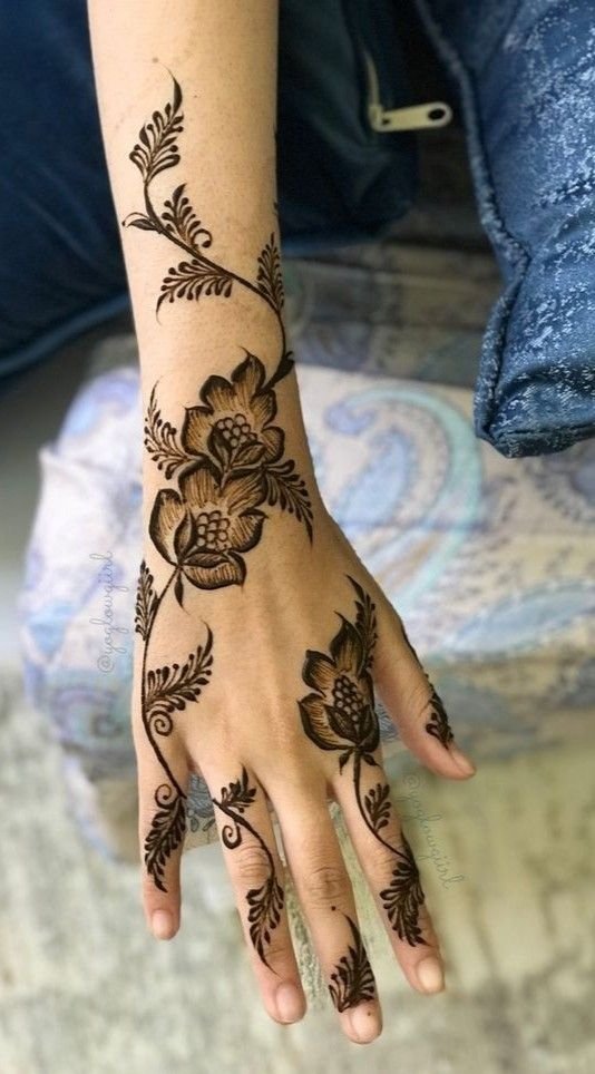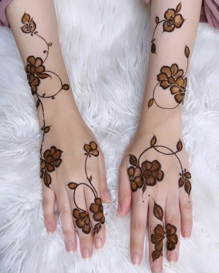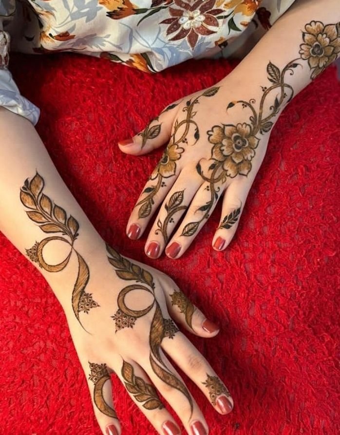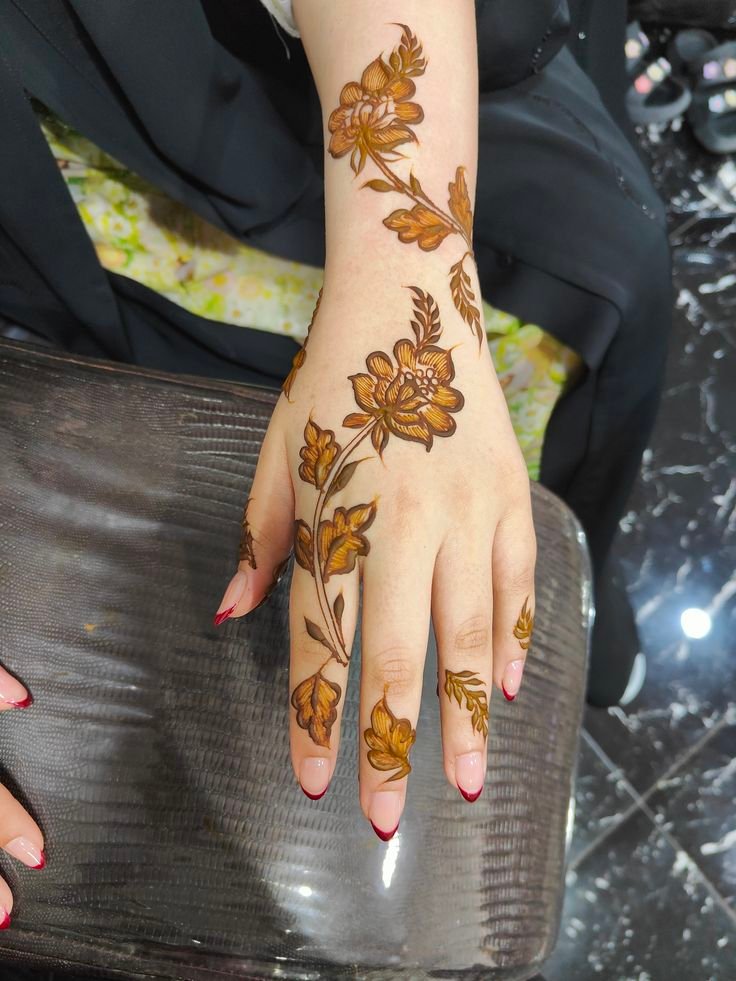 Simple Arabic back hand mehndi designs are best for girls who like a light and clean look. These designs often include one floral trail with minimal finger work. They are perfect for Eid, small events, and casual functions.