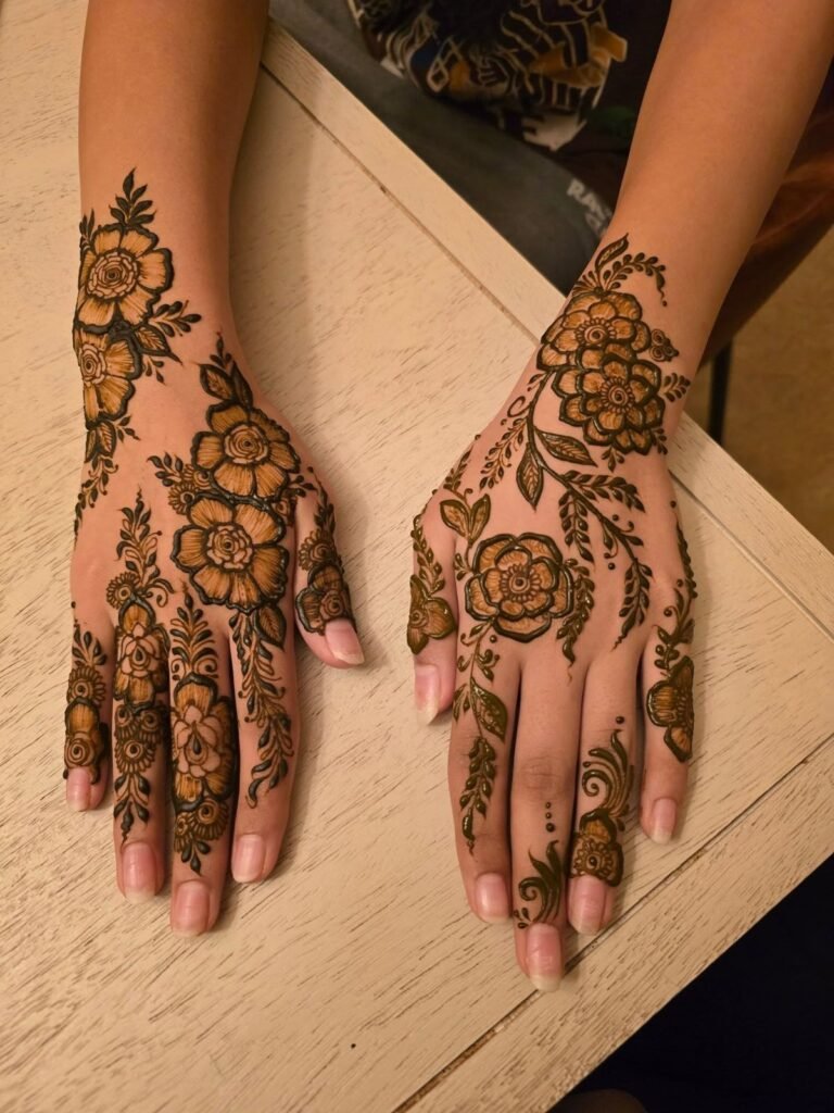 Arabic Pakistani Mehndi Designs are more than just patterns in Pakistan they are a cultural signature. The fusion of Arabic mehndi with Pakistani traditional elements has become one of the most loved henna trends, especially for brides, festivals, and social media aesthetics like Pinterest and Instagram.