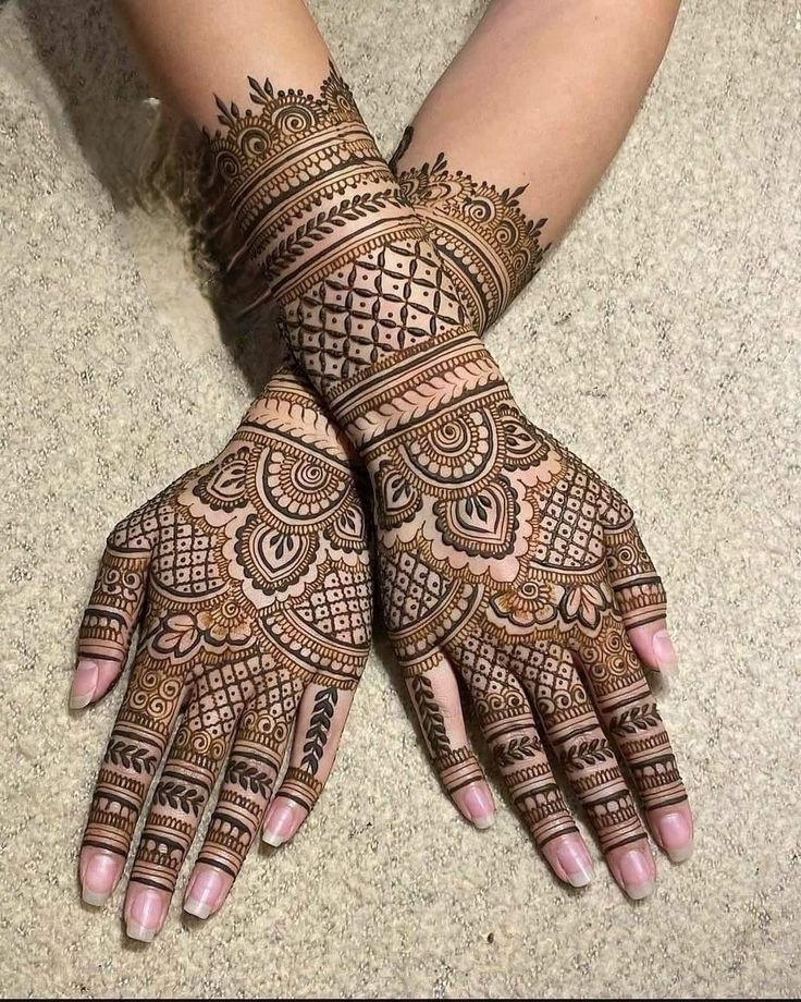 Beautiful heavy mehndi designs are perfect for those who love rich, detailed, and full-coverage henna art. These designs feature dense patterns, intricate motifs, and bold detailing that give hands a royal and elegant look. Heavy mehndi is especially popular for bridal events, weddings, Eid, and festive celebrations.