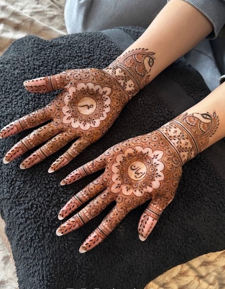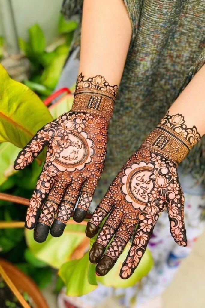 Bridal Mehndi Design with Name is one of the most special trends for brides today. Every bride dreams of unique henna patterns that not only look stunning but also add a personal touch. Adding the groom’s name or initials beautifully within the design makes the mehndi more meaningful. This creative style brings elegance, personalization, and romance all together.