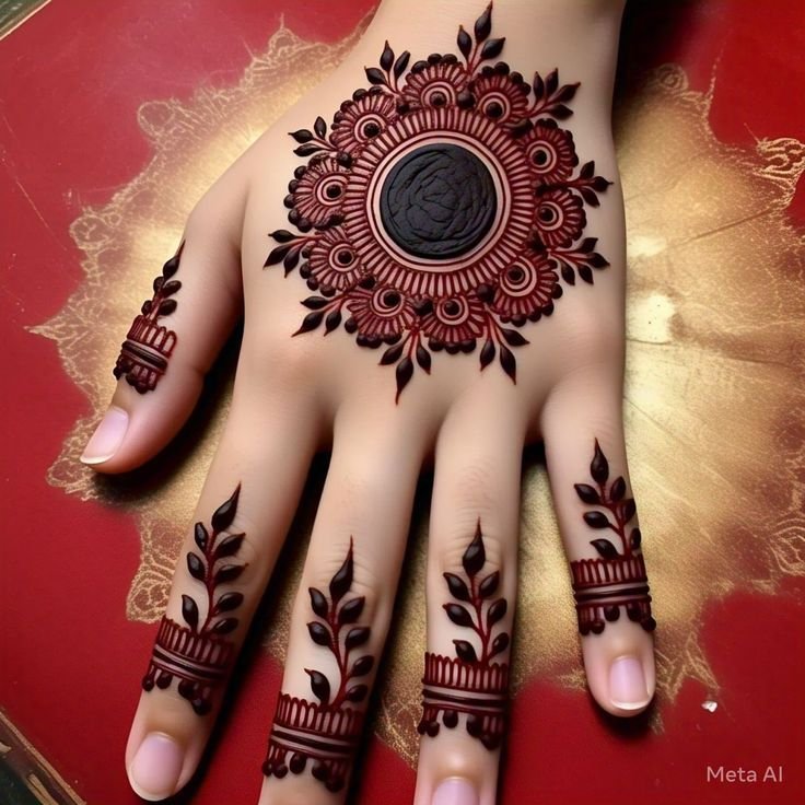 The simplicity and symmetry of circle mehndi designs make them truly stand out. They are easy to create and look graceful on both small and large hands. The design can be kept minimal with a single round mandala or detailed with floral, dotted, and leafy extensions around the circle.