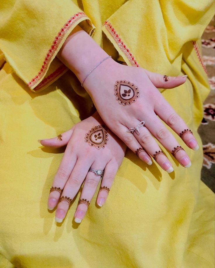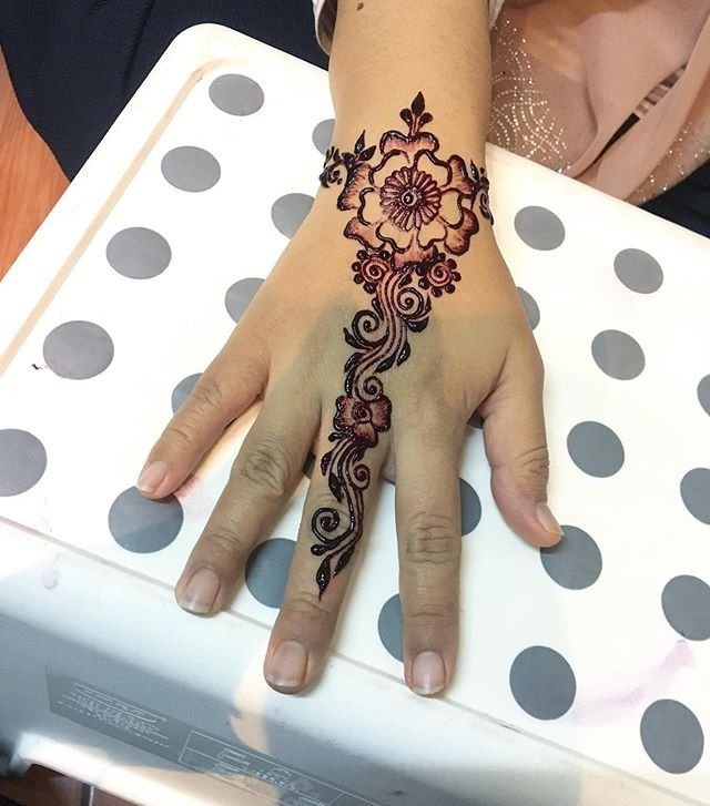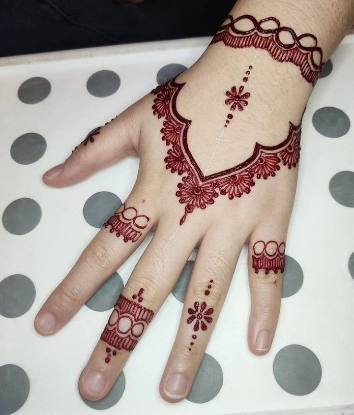 If you want something that looks fresh yet traditional, go for combinations of floral and line-based patterns. These cute small mehndi designs can be drawn on the fingers, wrists, or back of the hand.