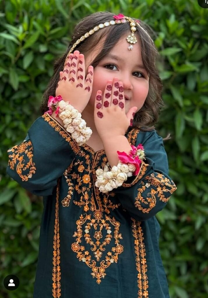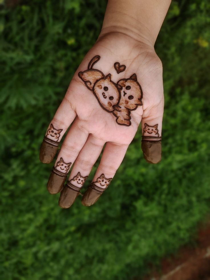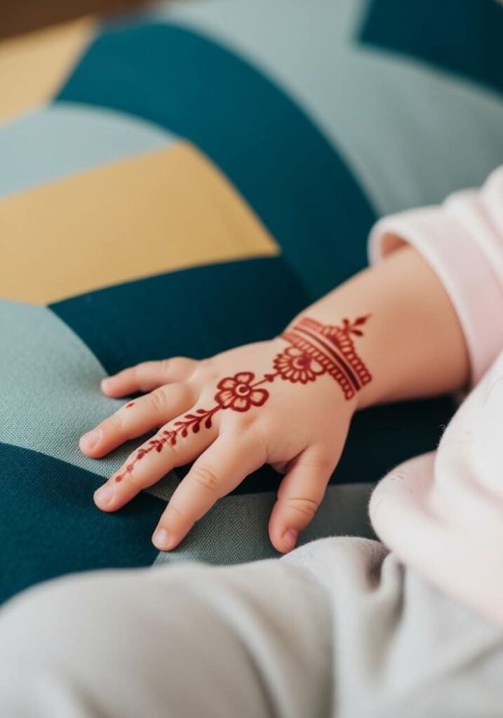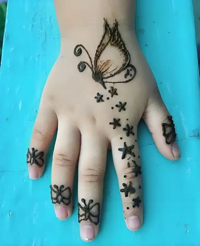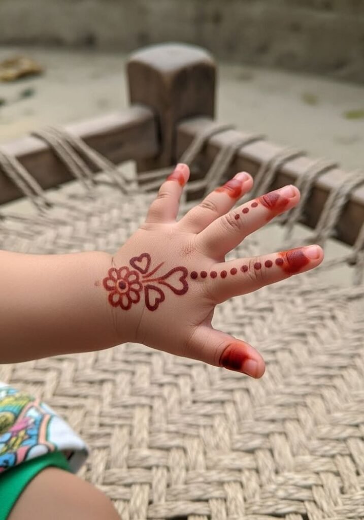 Kids love mehndi designs that are fun, cute, and colorful. Cute and small mehndi designs for kids are often based on simple shapes like hearts, flowers, or butterflies. These designs are quick to make and bring instant joy to children.