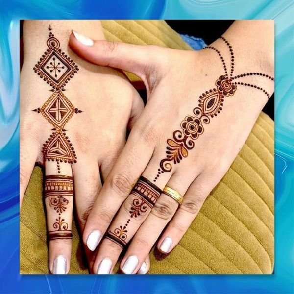 A simple version has straight or curved lines with small dots. It is quick to apply and best for beginners who want to try mehndi without spending much time.