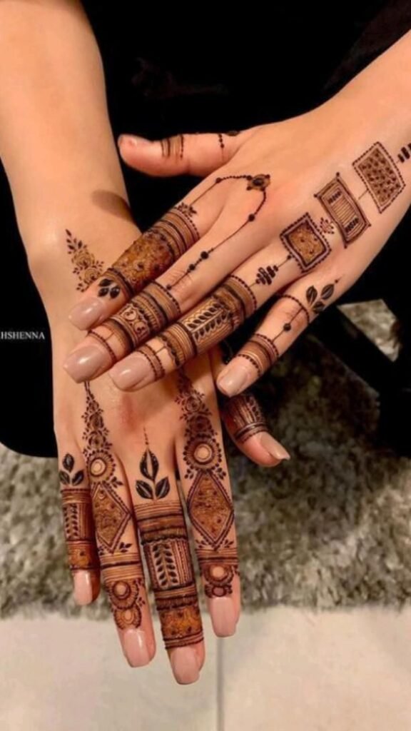 Chain mehndi design is one of the easiest and most elegant styles for hands. It looks like jewelry, is light to apply, and always gives a graceful touch. Whether it’s Eid, a wedding, or a casual event, chain mehndi suits every occasion.
