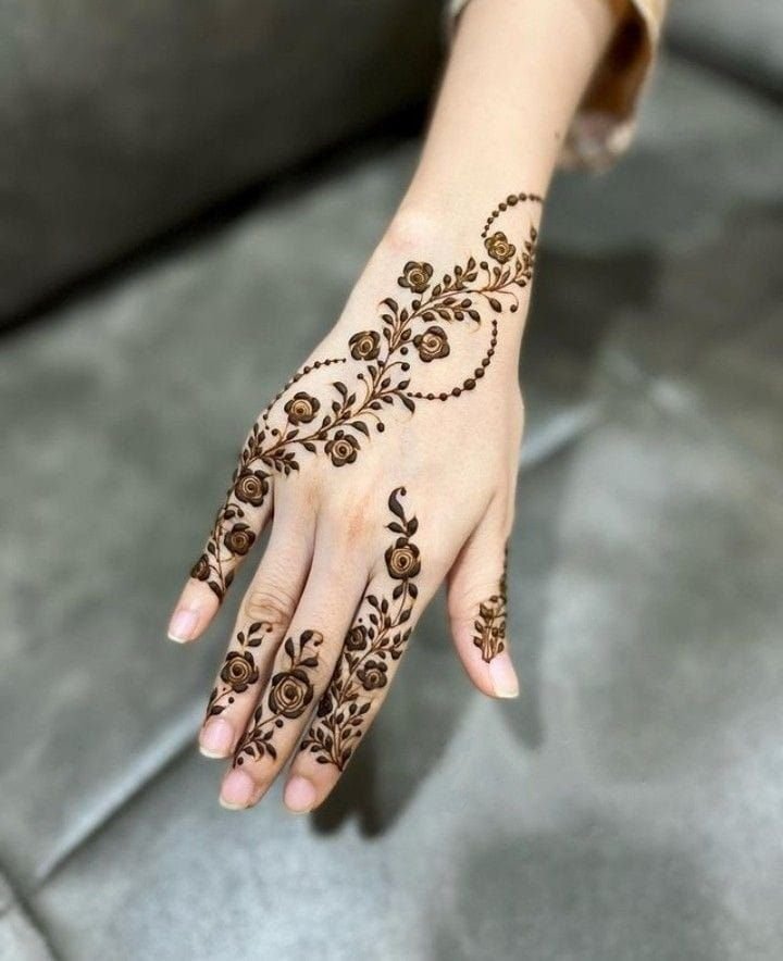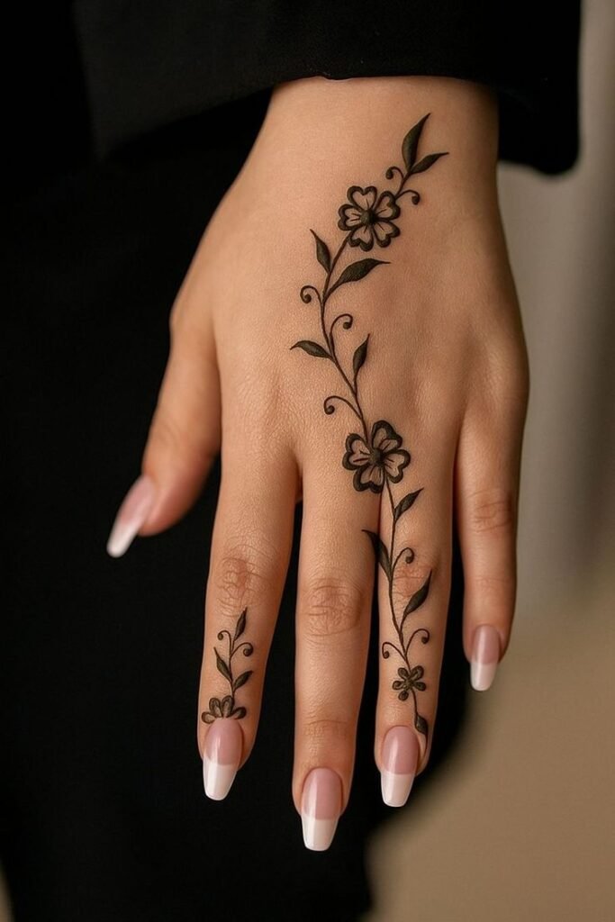 Minimal flowers and light vines make this design perfect for beginners or daily wear. It looks elegant without being heavy.