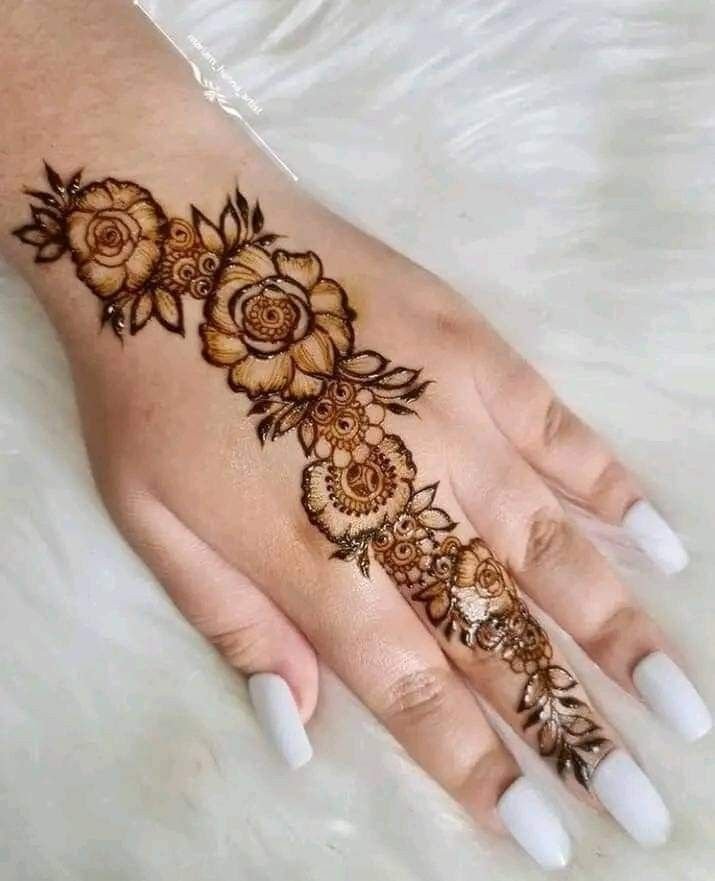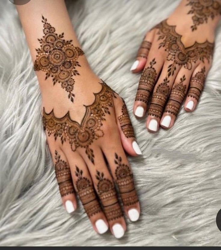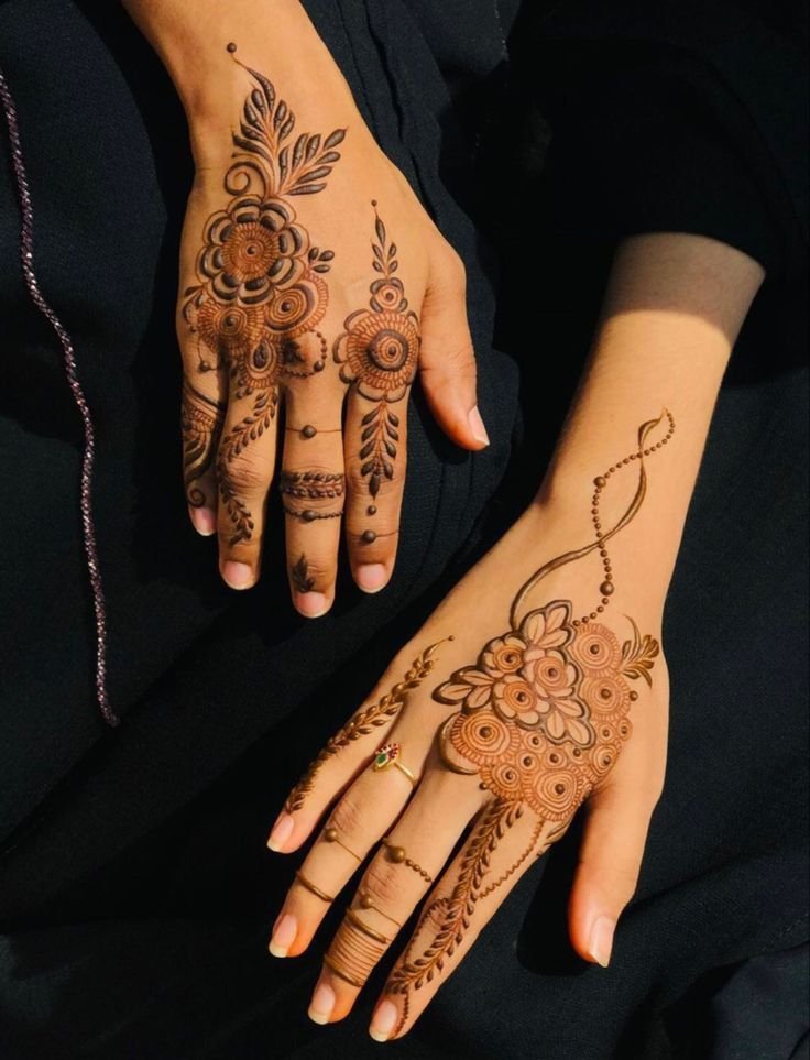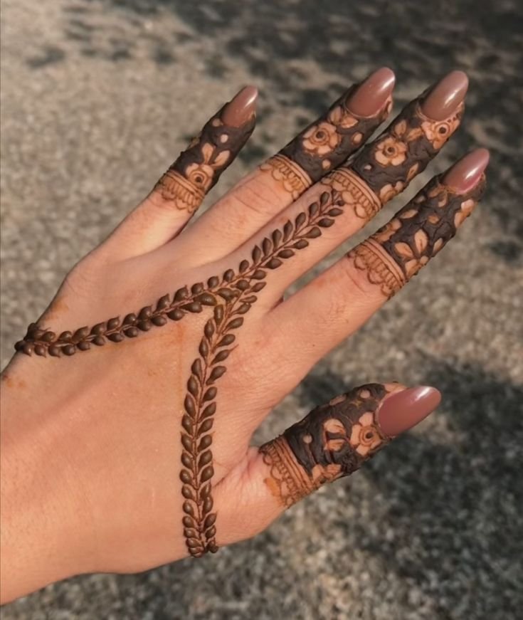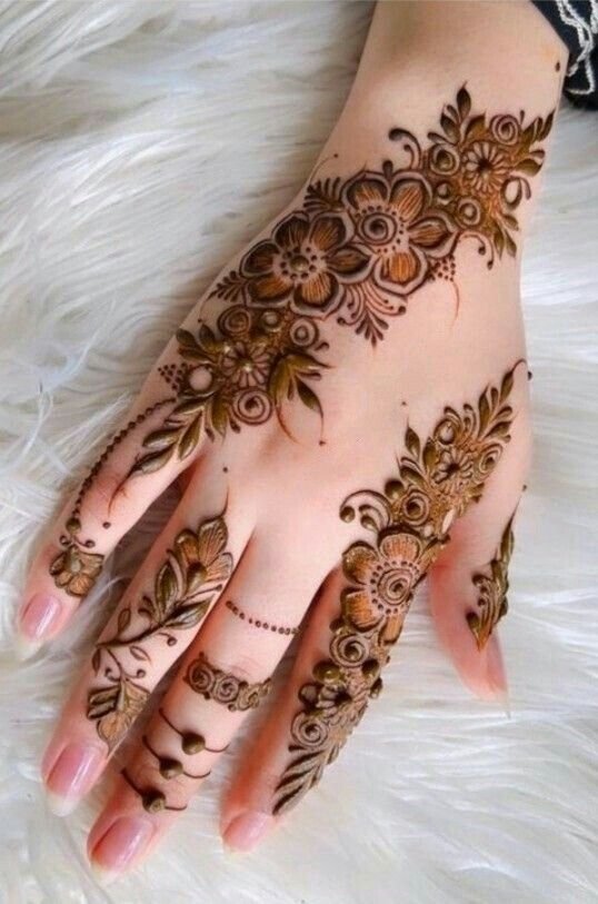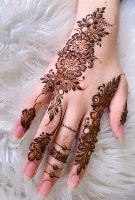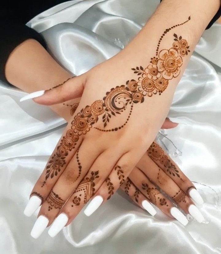 Girls often love fresh and pretty patterns that express their personality. The best flower mehndi design for girl includes floral chains, leafy vines, and detailed petals covering fingers or the back of the hand. It’s ideal for college functions, Eid celebrations, and even daily wear — elegant yet youthful.