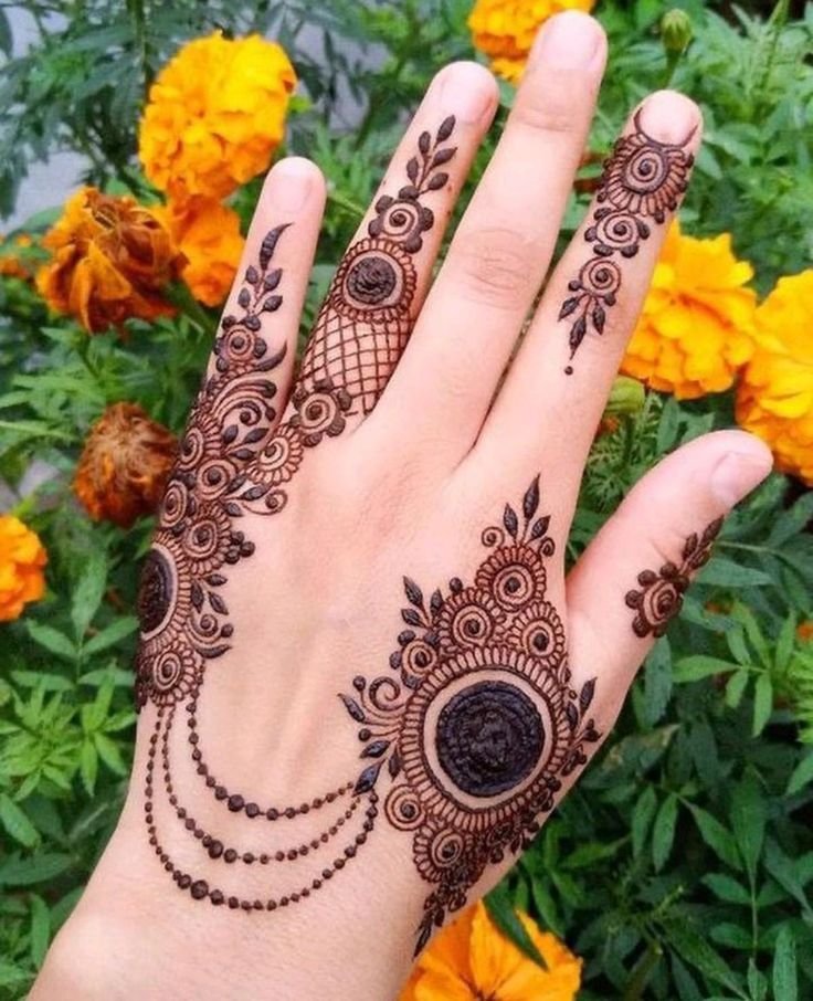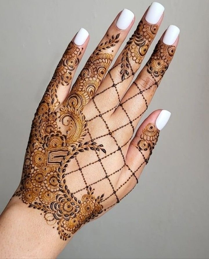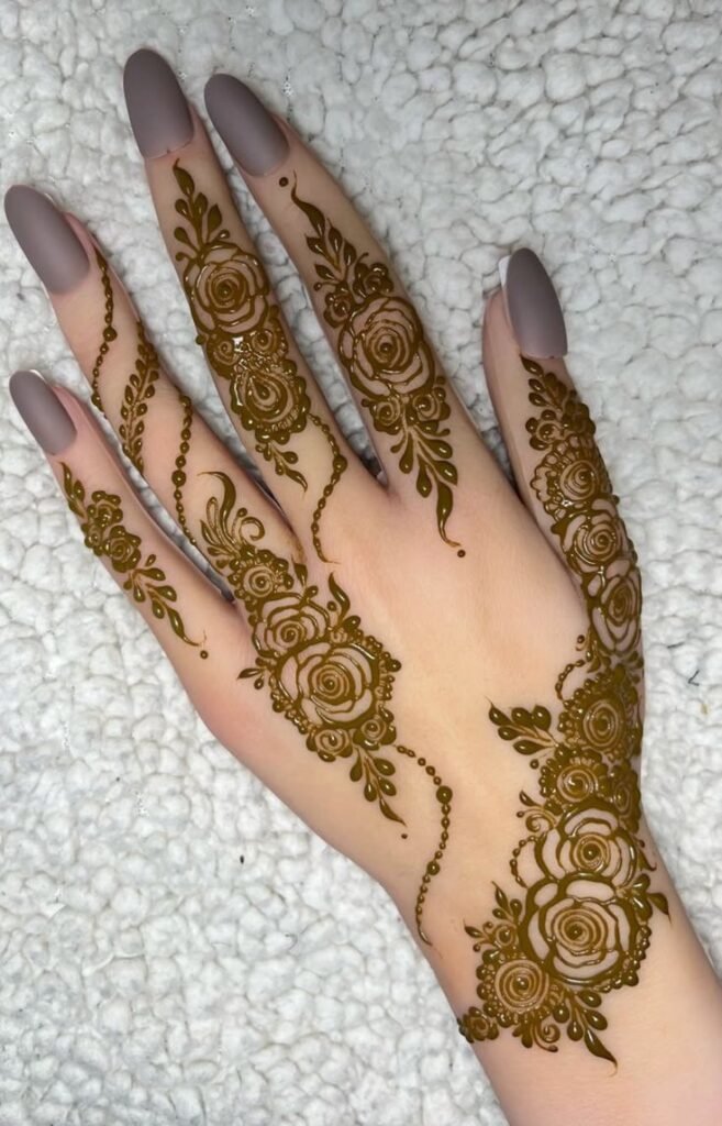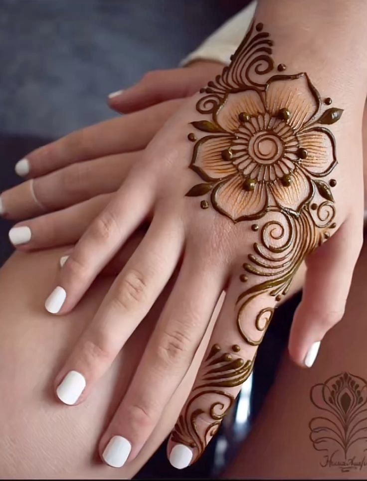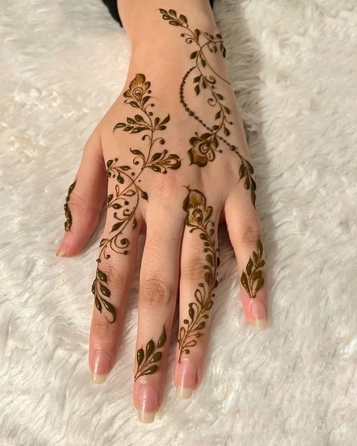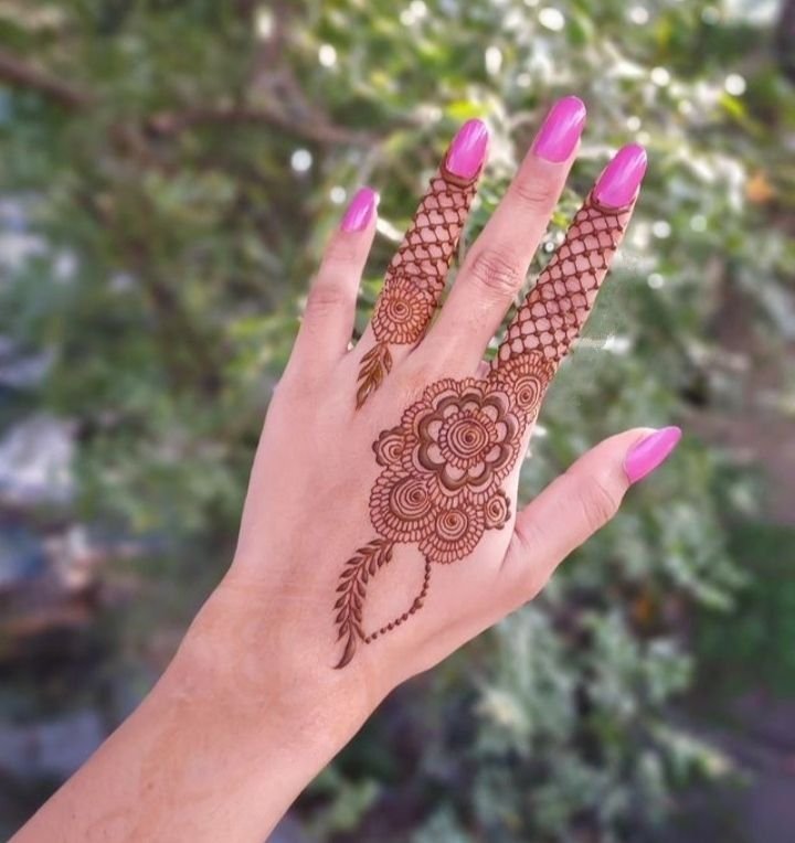 Girls often love fresh and pretty patterns that express their personality. The best flower mehndi design for girl includes floral chains, leafy vines, and detailed petals covering fingers or the back of the hand. It’s ideal for college functions, Eid celebrations, and even daily wear — elegant yet youthful.