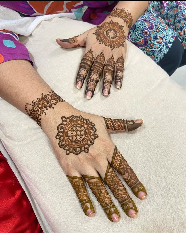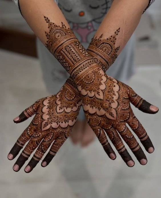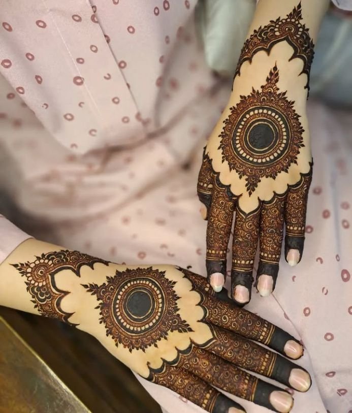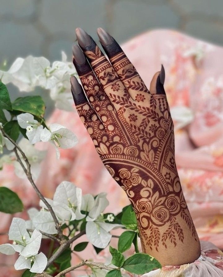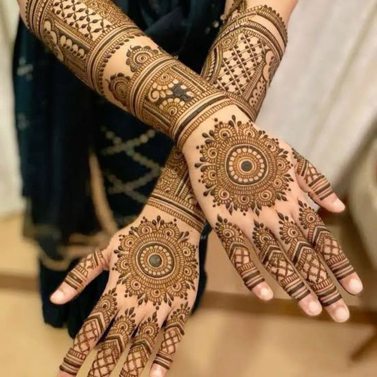 Classic Indian mehndi focuses on symmetry and fine detailing.