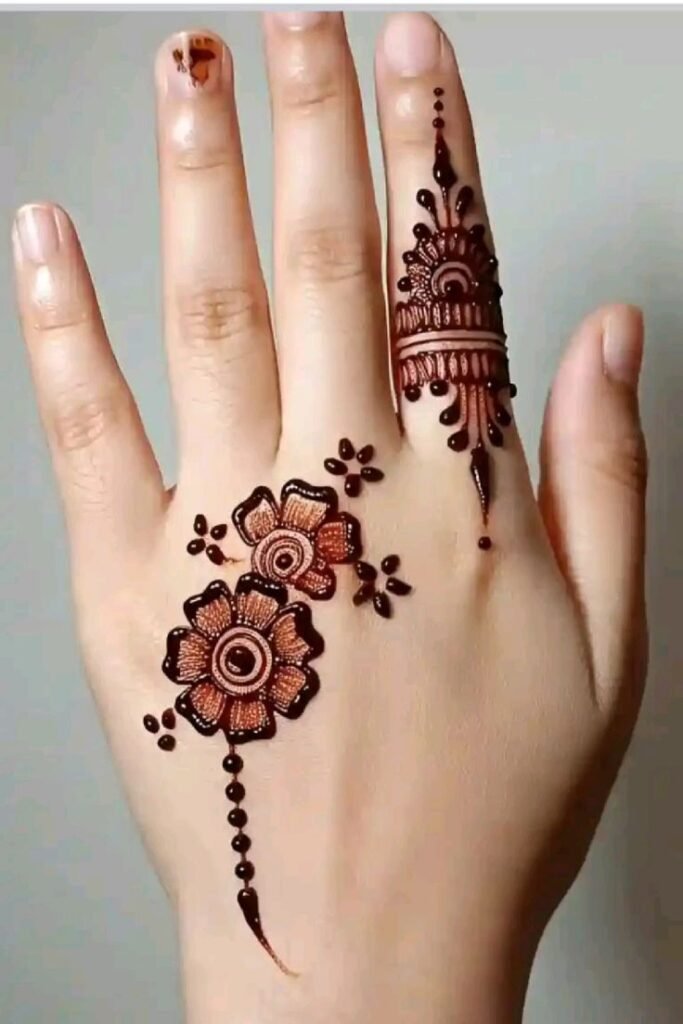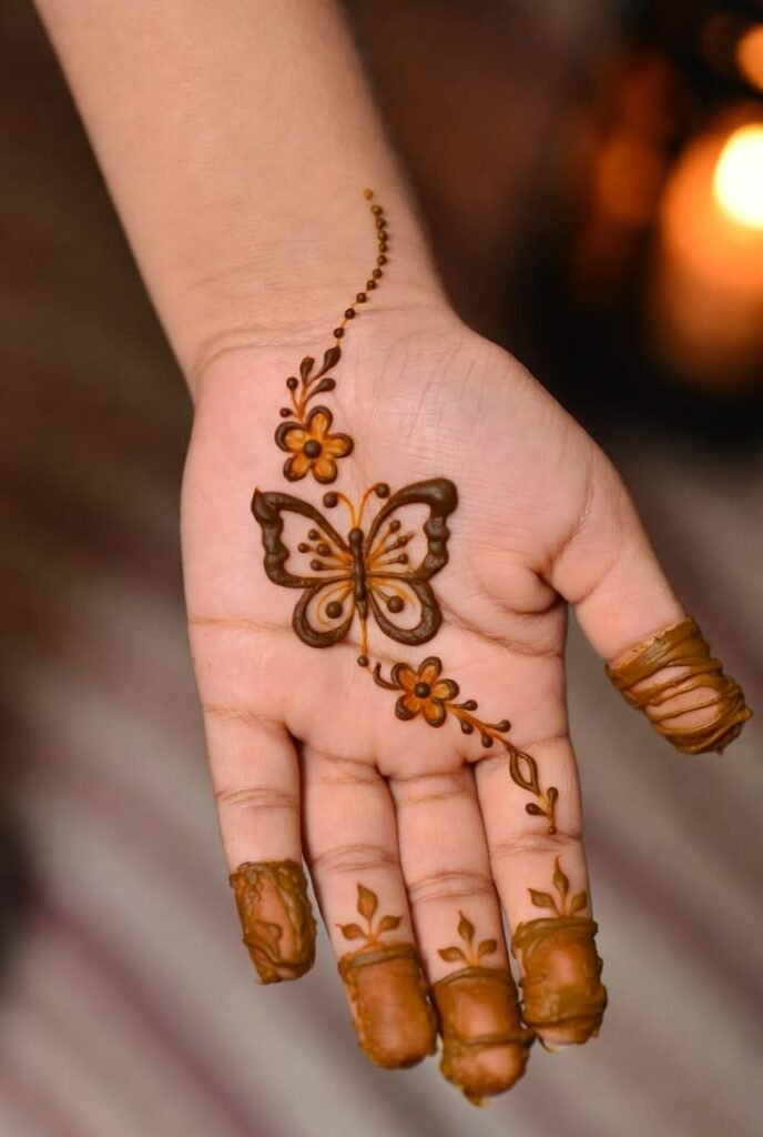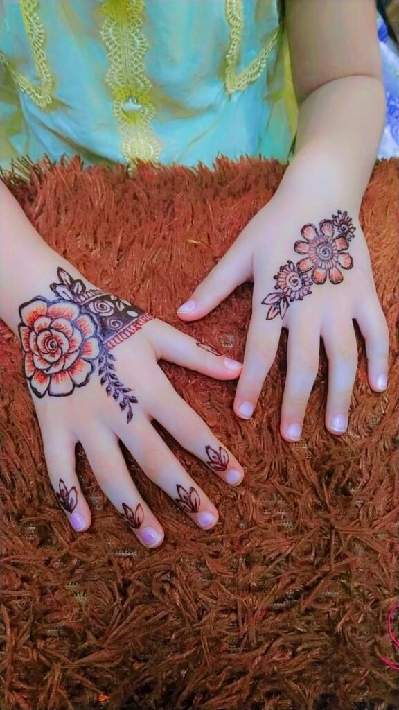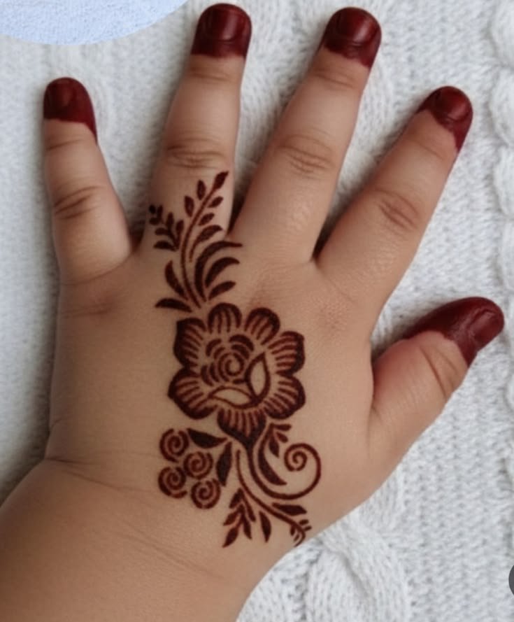 Kids Mehndi Design Simple styles are perfect for little girls who want cute and easy henna patterns on their hands. Unlike heavy bridal designs, kids mehndi focuses on small flowers, hearts, stars, and simple shapes that look adorable and are quick to apply.