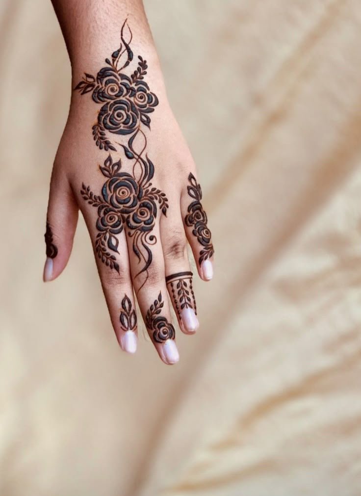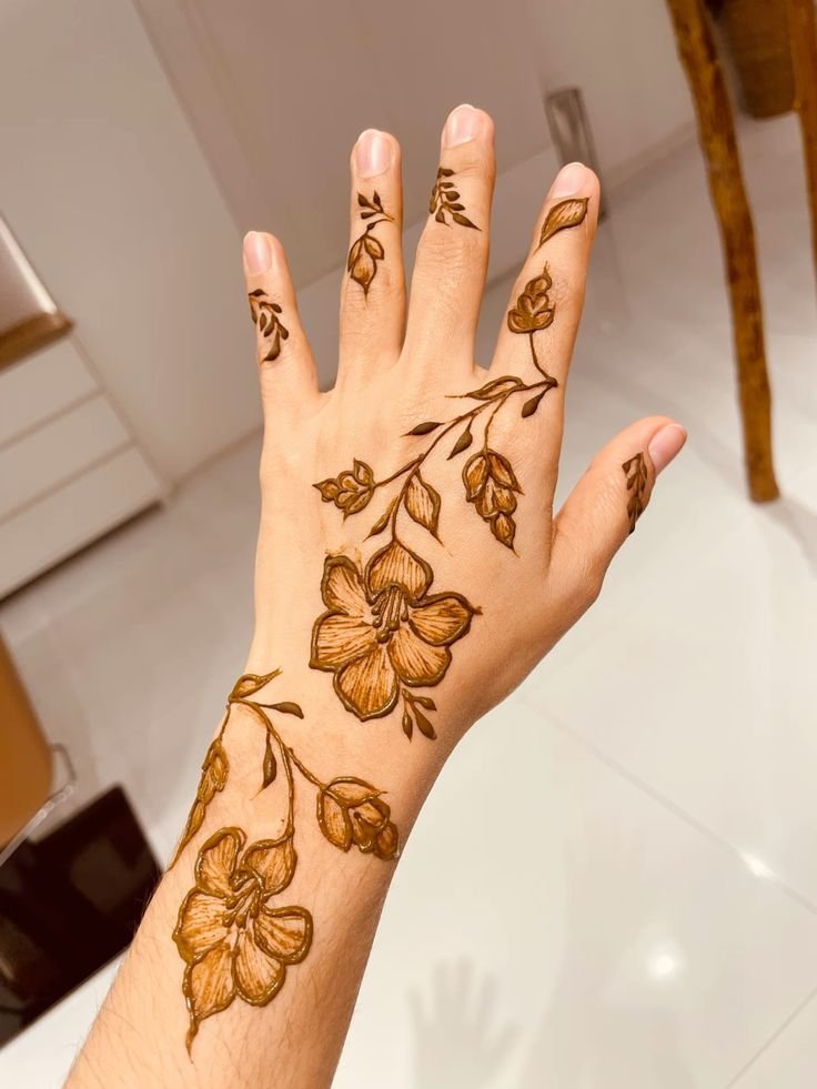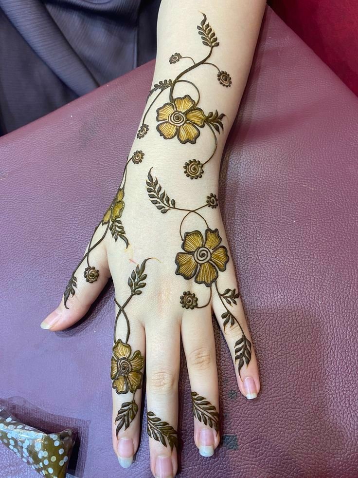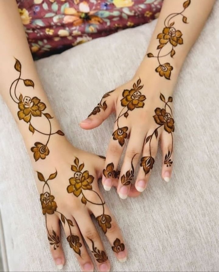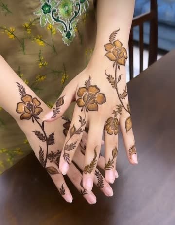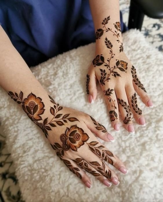 The traditional floral Arabic mehndi remains a top favorite. Large flowers combined with leafy vines create a soft yet bold look that suits any occasion.
