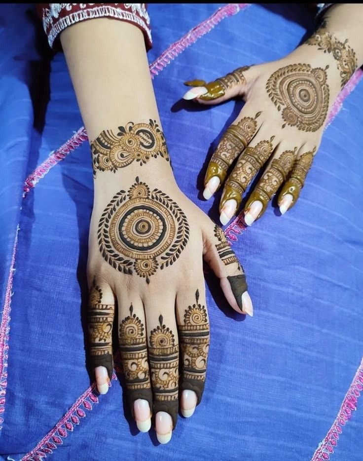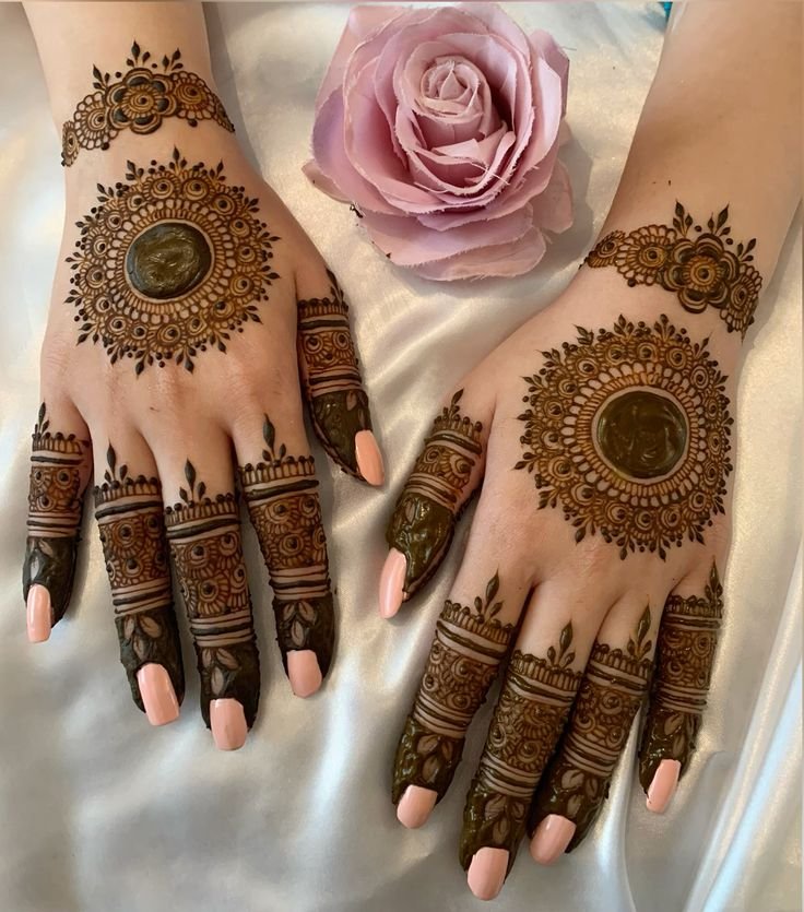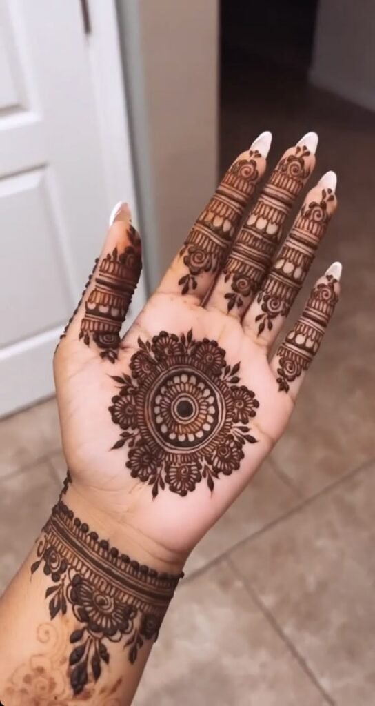 The aesthetic mandala mehndi design for girls is all about simplicity and elegance. These designs usually feature a central circular pattern surrounded by floral or dotted motifs. Perfect for festive events, college functions, or casual gatherings, this style highlights feminine beauty without being too heavy or complicated. Girls often prefer it because it looks clean, minimal, and photographically stunning.
