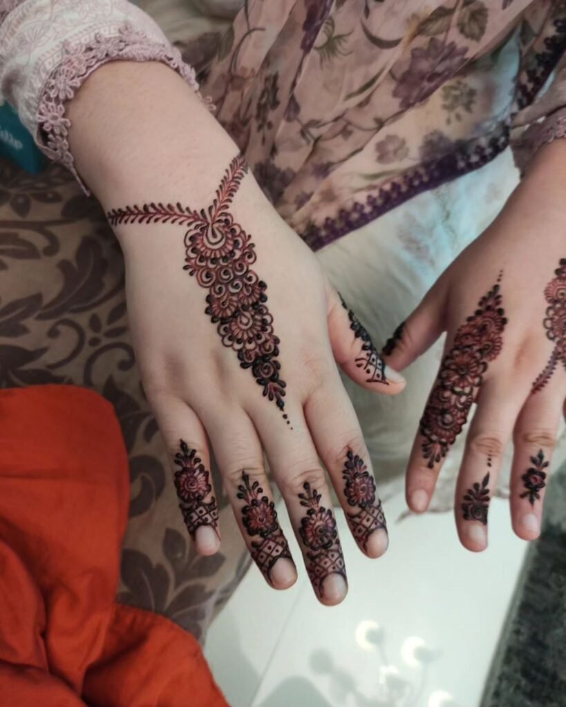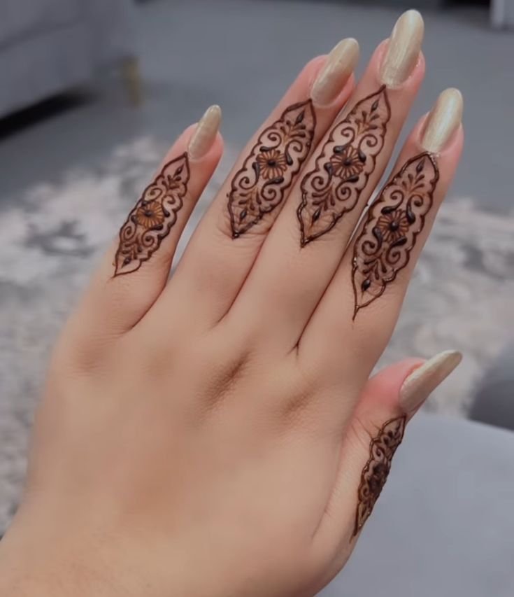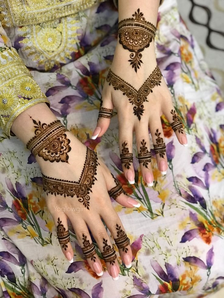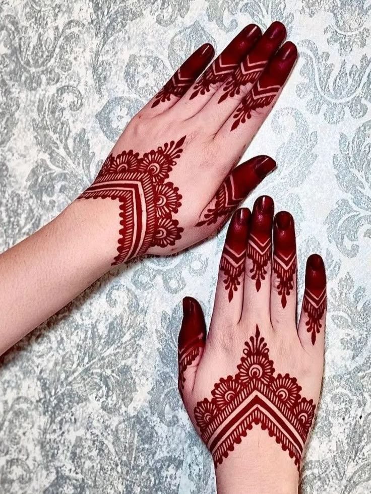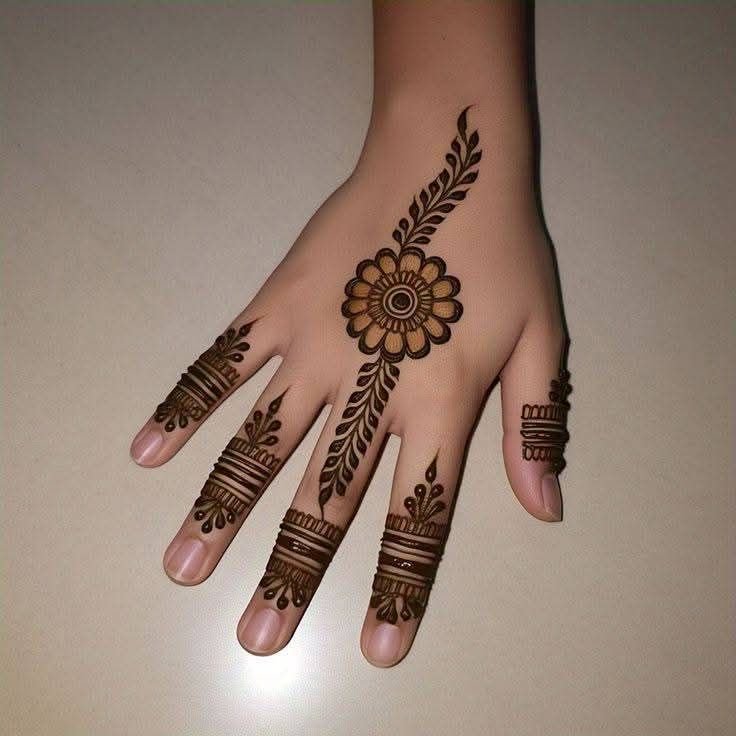 They’re great for beginners or anyone who wants a neat and minimal look. You can experiment with finger mehndi or side-hand styles for an elegant touch without spending hours applying it.