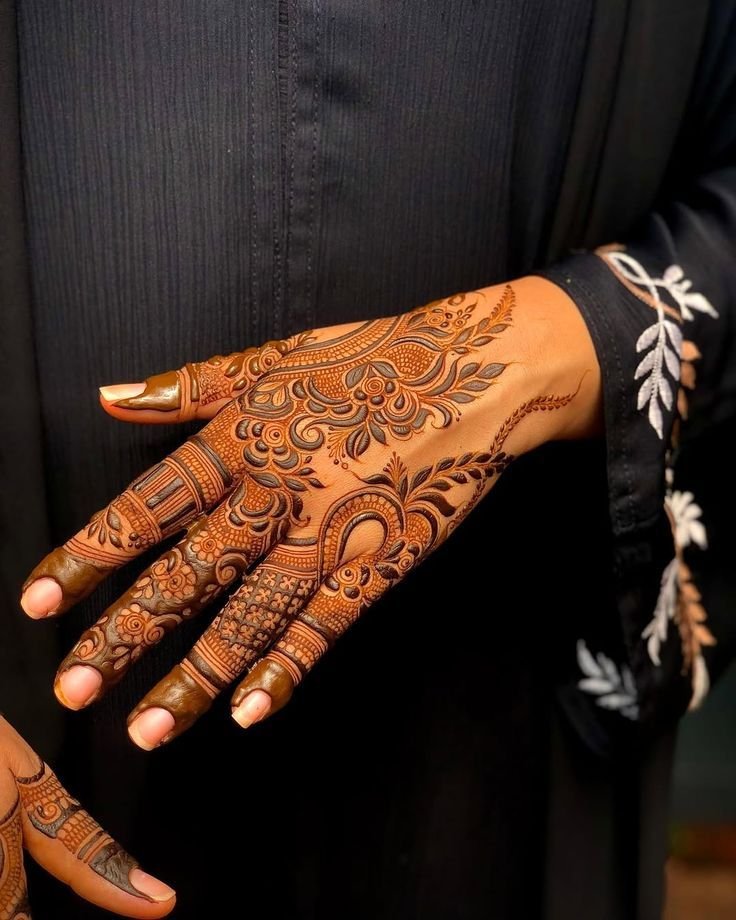 Middle hand mehndi designs are timeless because they create a focal point that looks elegant, symmetrical, and camera-ready. Whether bold Arabic outlines, detailed traditional motifs, or minimal florals, this style works beautifully for every occasion and social platform.