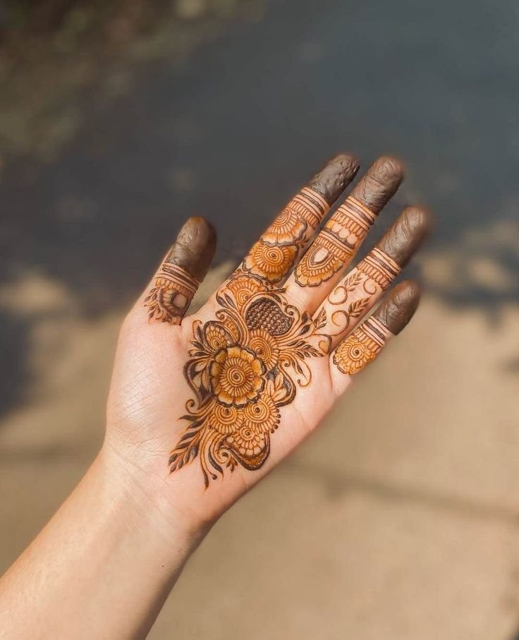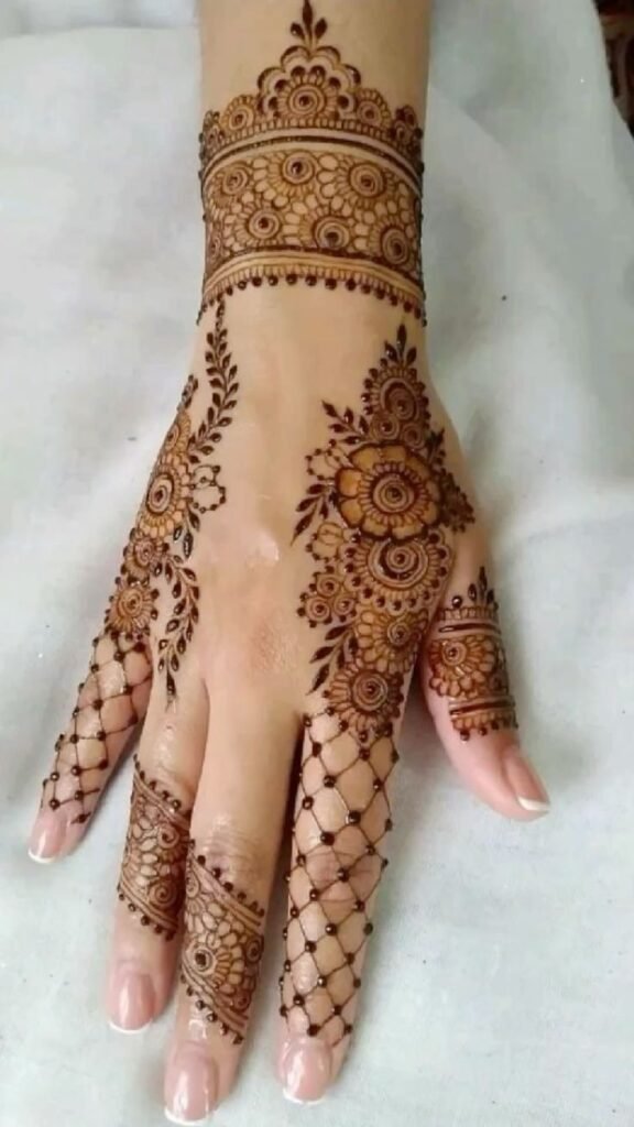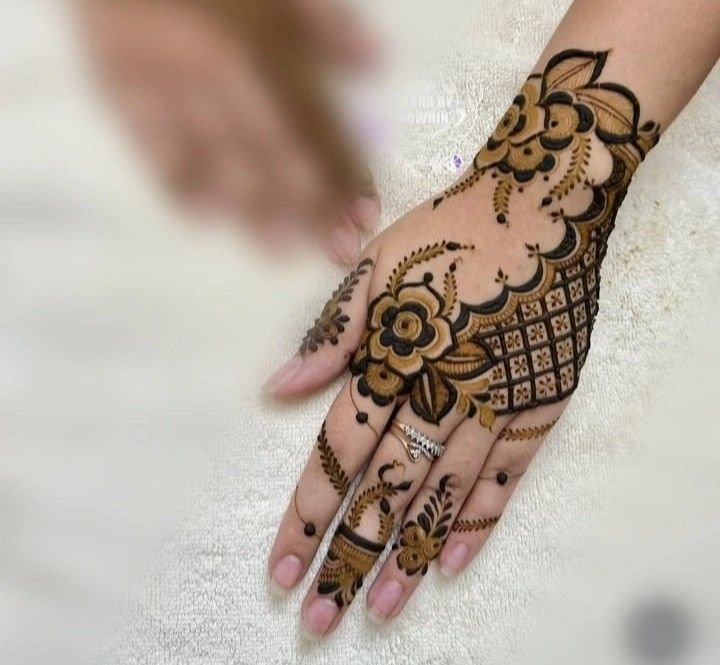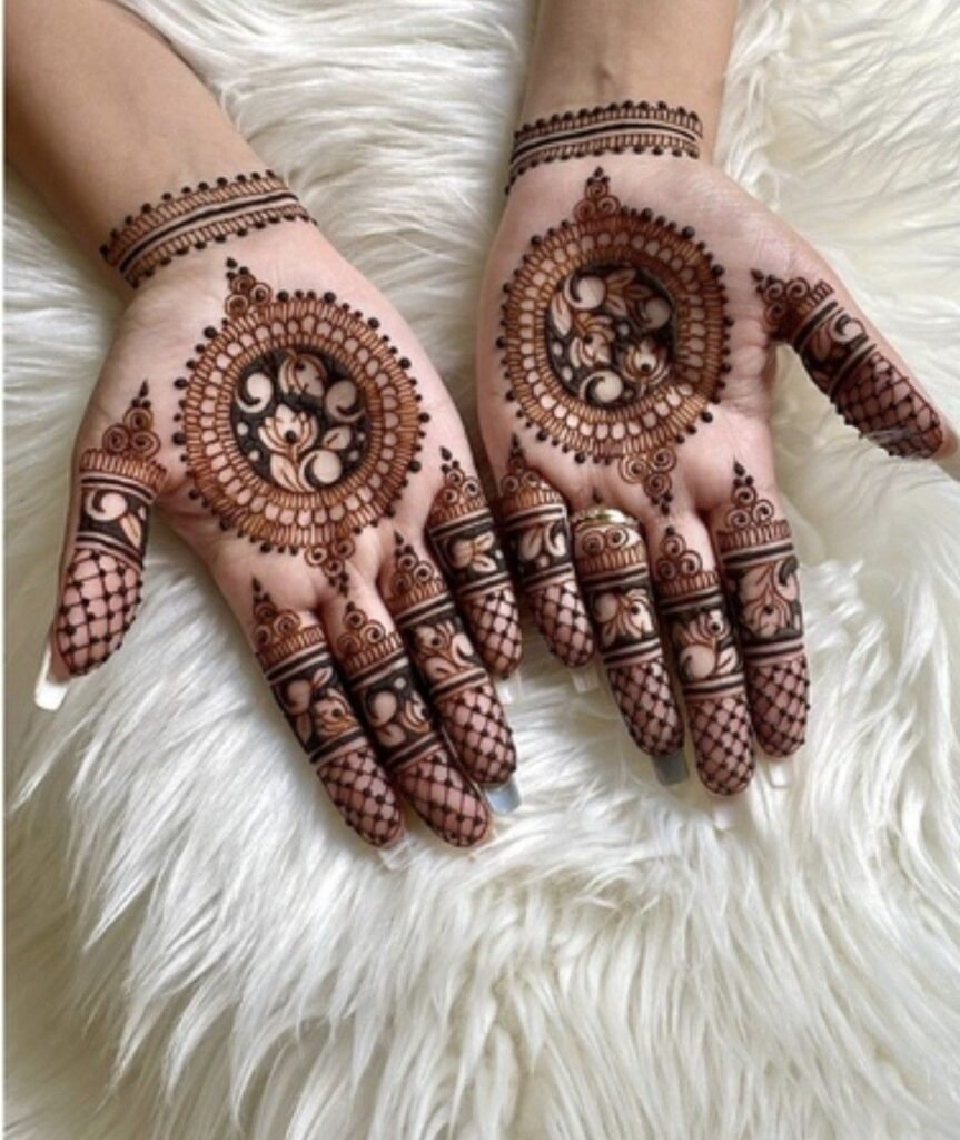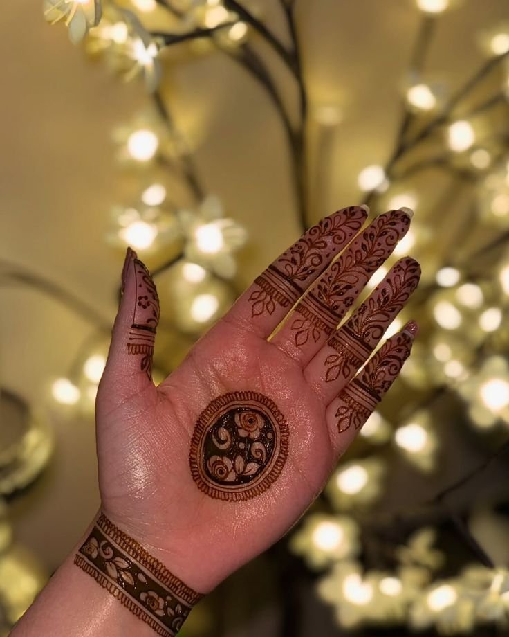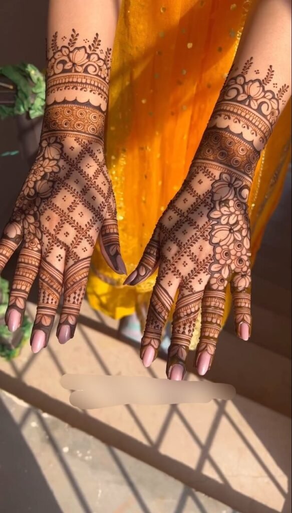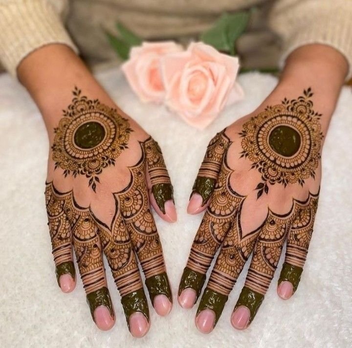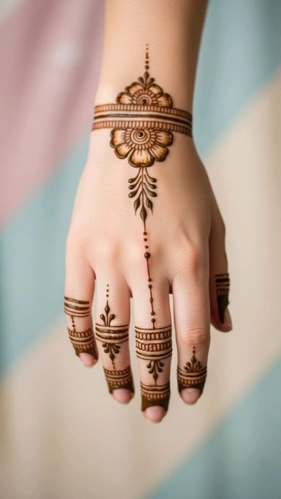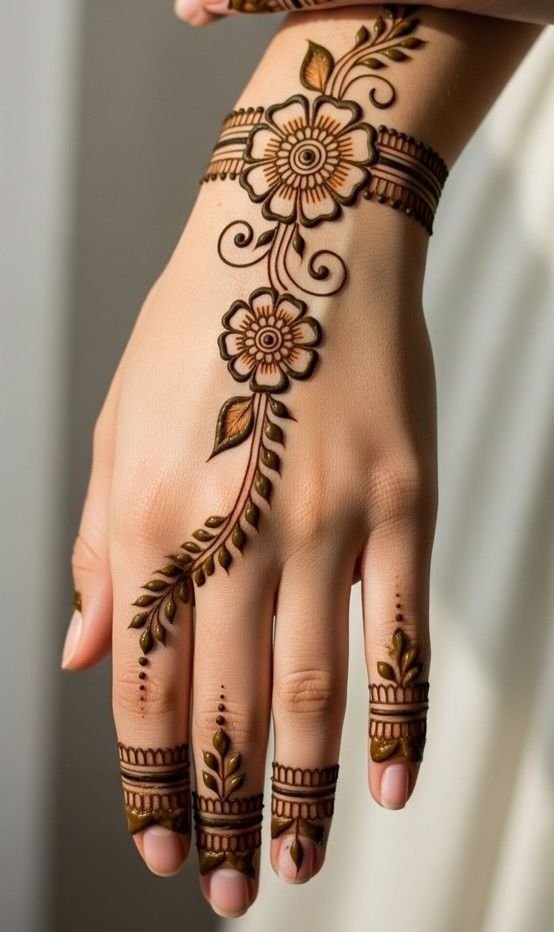 Middle hand mehndi designs focus on the center area (palm or back mid region), making them the most eye-catching part of any henna look. These designs are loved for their balanced symmetry, minimal space coverage, and aesthetic appeal, making them perfect for Eid, weddings, parties, and casual Pinterest pins.