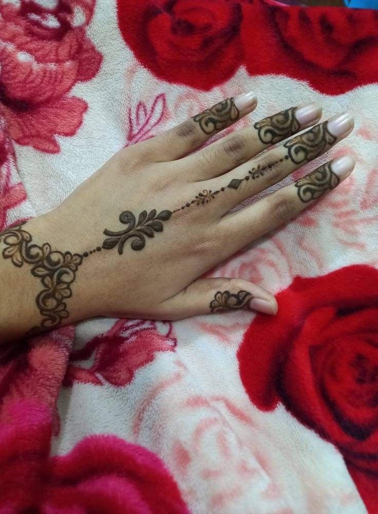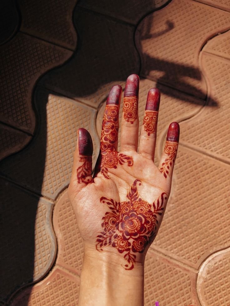 A tiny pattern like a sun, crescent, mini mandala, or single rose drawn in the center of the back hand. This is highly suitable for daily wear or soft Pinterest aesthetics.