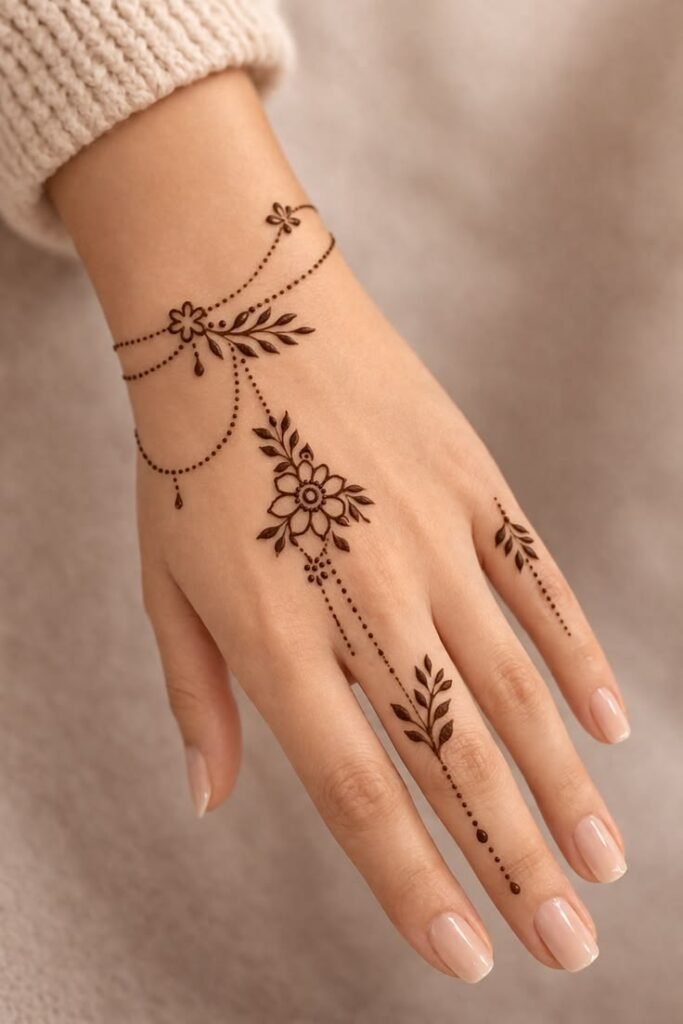 Minimal henna designs for hands are perfect for those who love simple, clean, and elegant styles. Unlike heavy bridal mehndi, minimal designs focus on small patterns that look modern and stylish.