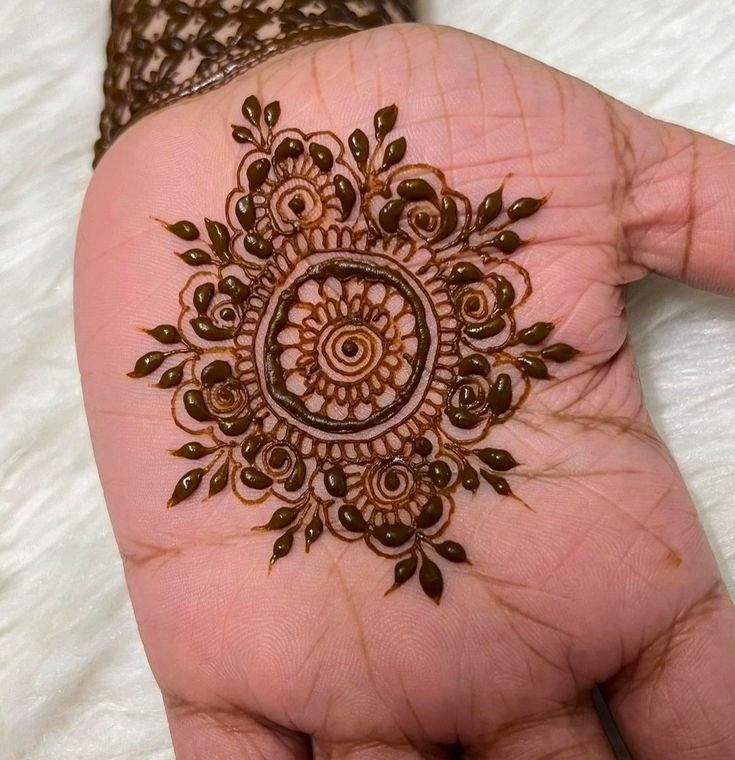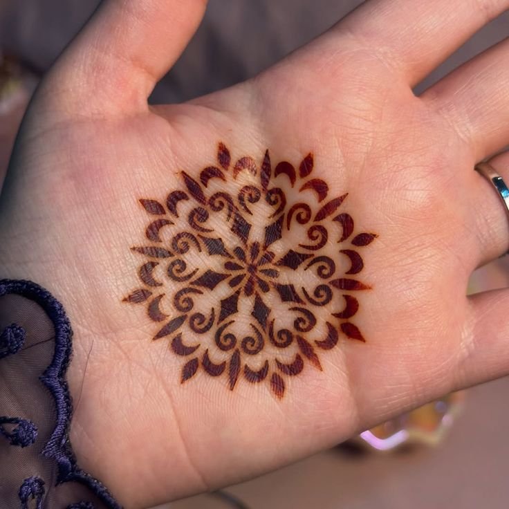 A small mandala in the center of the hand looks elegant and balanced.