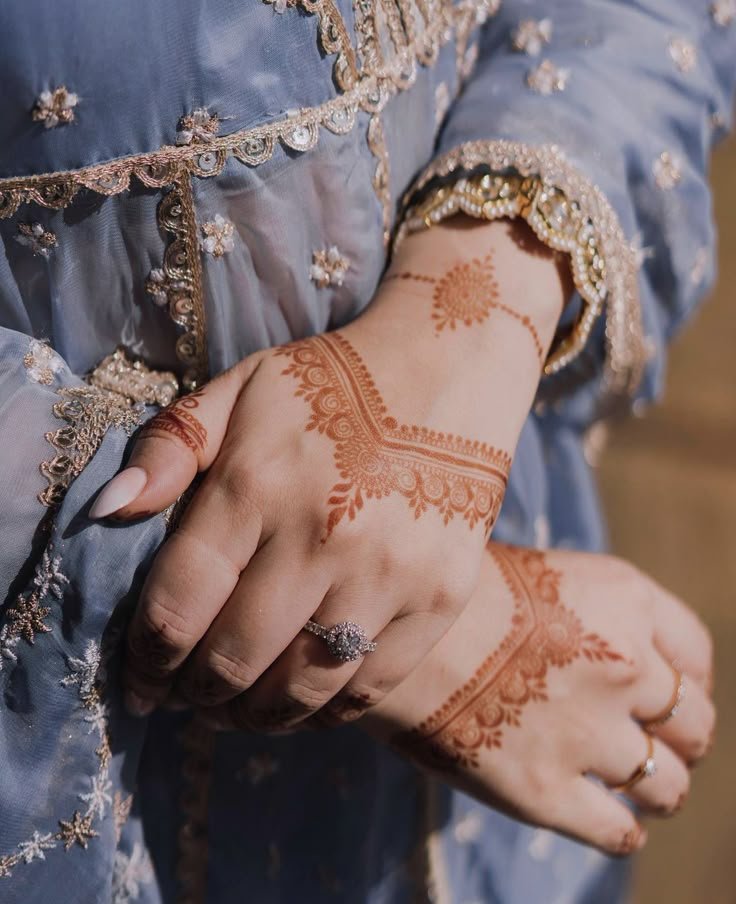 For front hands, minimalist designs can highlight your wrist and fingers beautifully. You can opt for bracelet-style patterns, mandala circles, or sleek Arabic strokes that enhance your natural hand shape without being too heavy. They’re ideal for everyday wear or subtle festive looks.