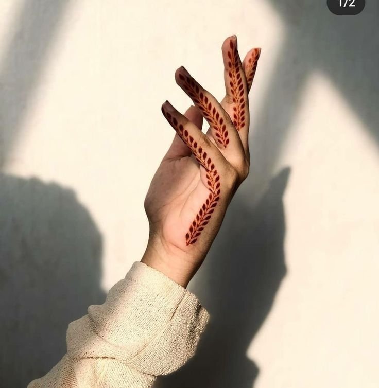 If you love understated elegance, just finger mehndi designs are a must-try. You can decorate only your fingertips with tiny dots, leaf chains, or ring-like patterns. This minimal style looks sophisticated and pairs beautifully with rings or nail art.