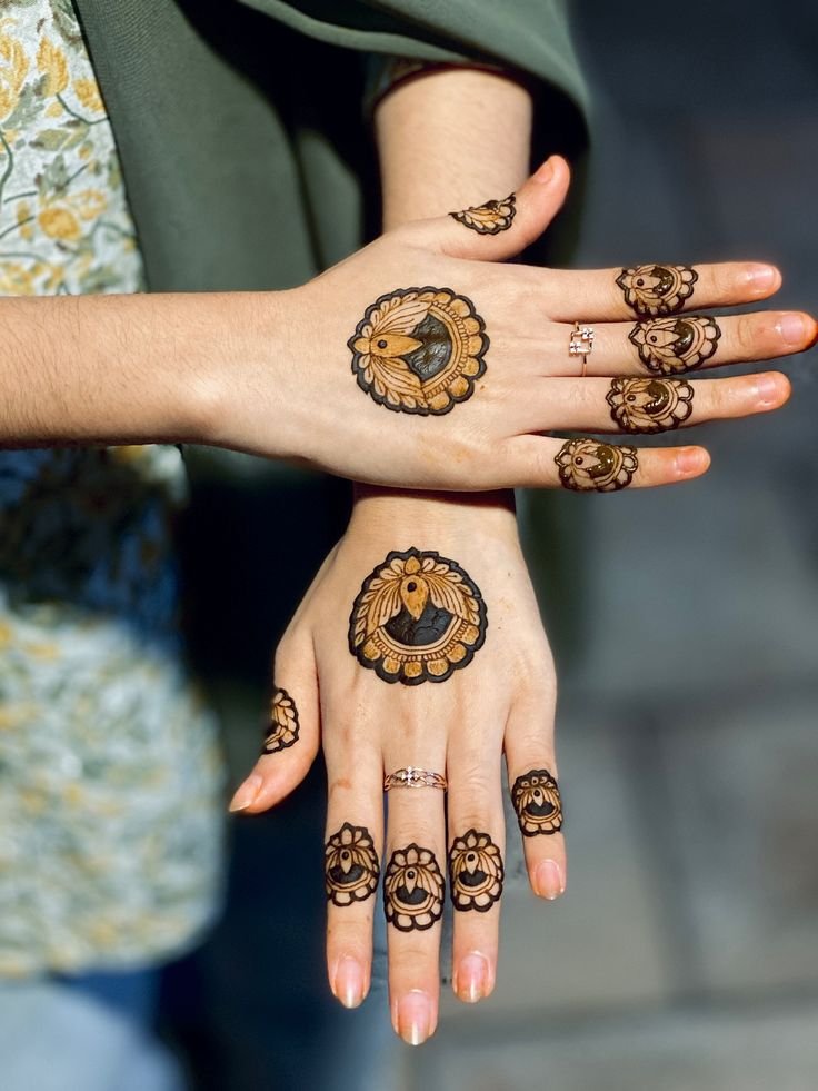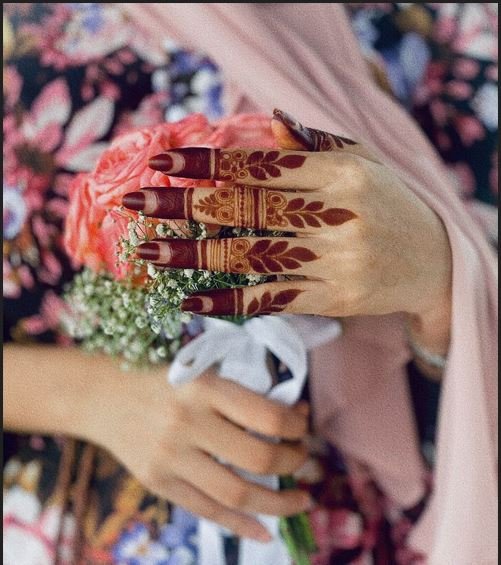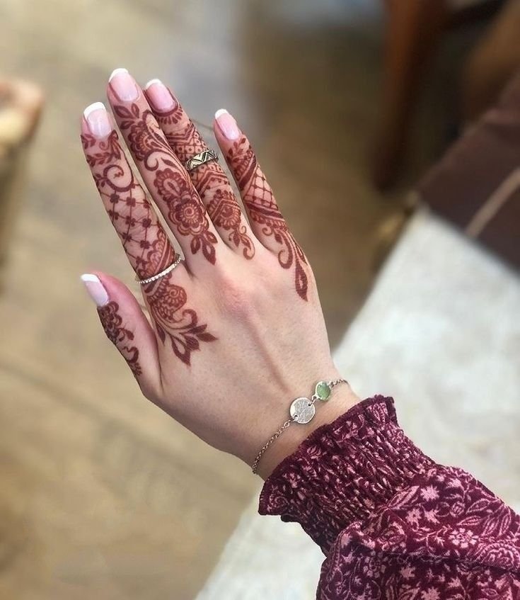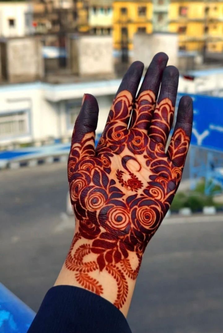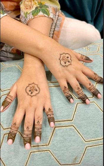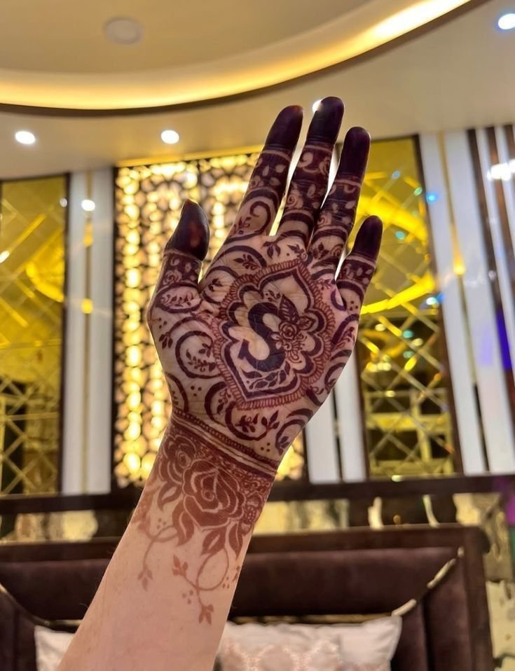 No henna on fingers, keeping the palm or arm design clean and centered—popular for those who love minimal henna art.