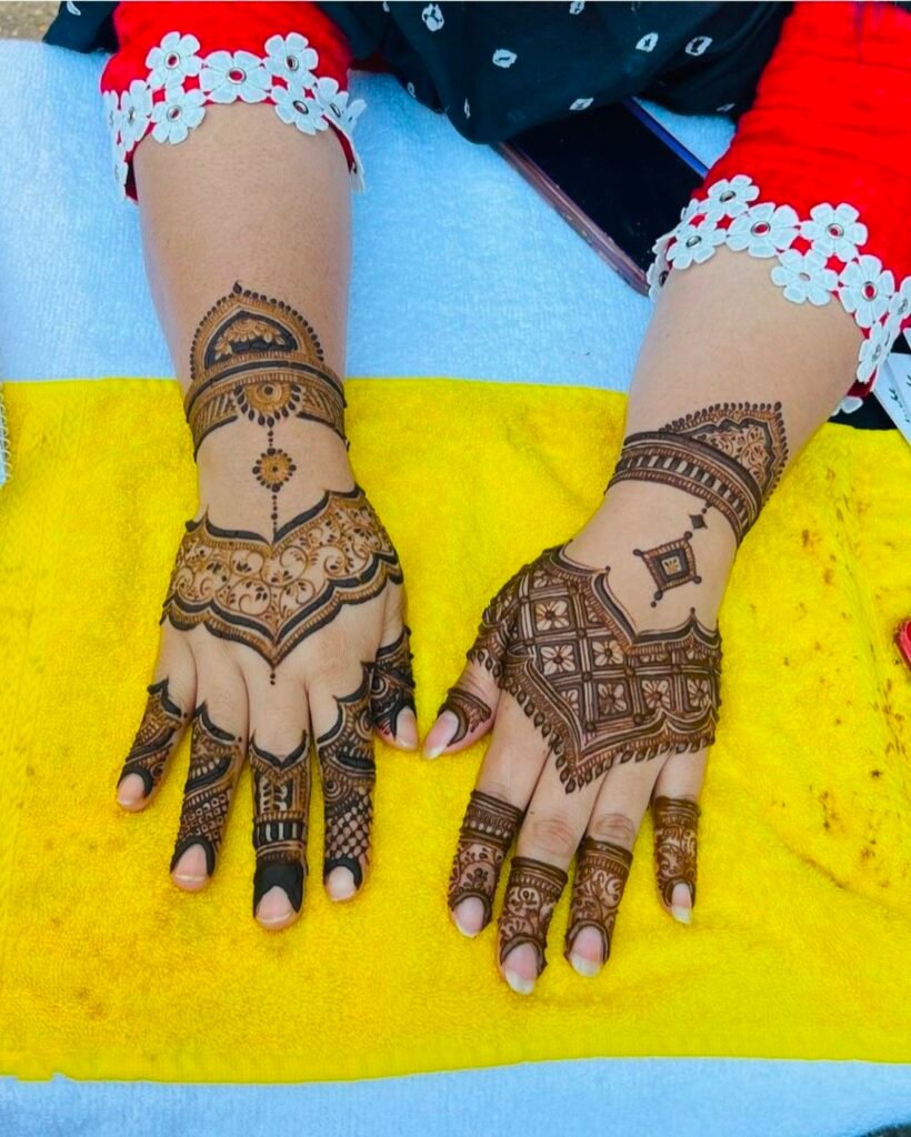New Trend Mehndi Designs are all about elegance, creativity, and simplicity. Whether you love bold Arabic outlines or minimal mandala chains, these trends will keep your henna looks modern and Pinterest-perfect.