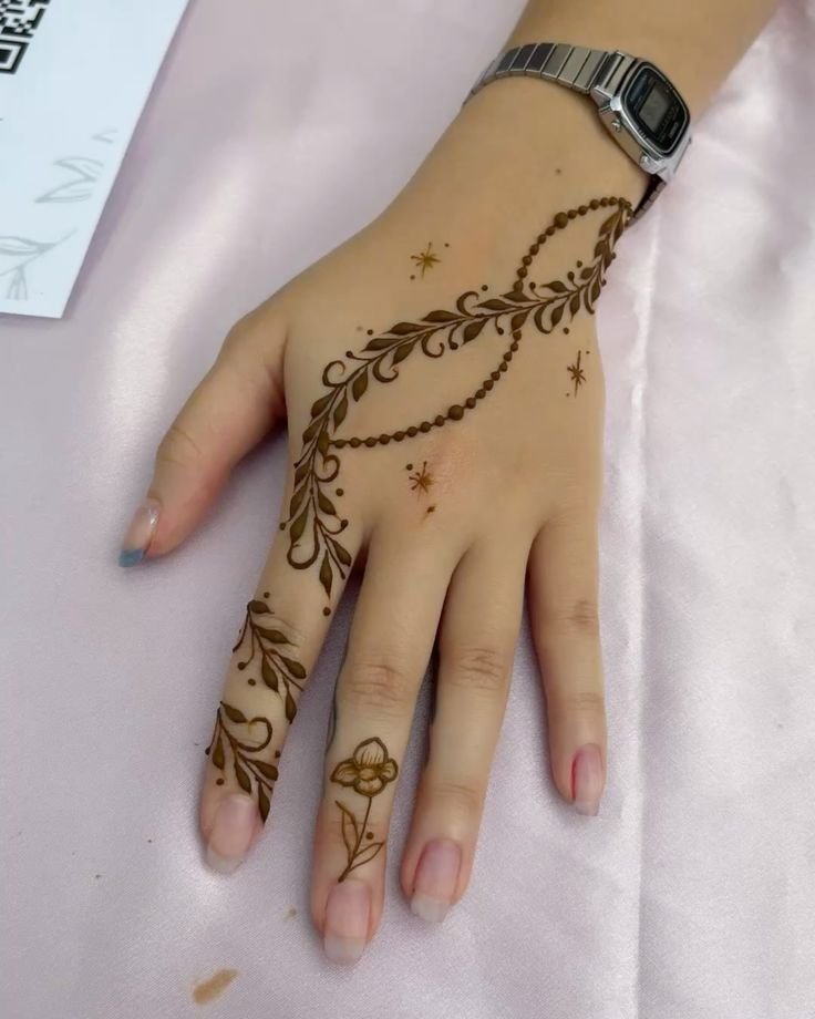 One line mehndi designs are perfect for those who love simplicity and elegance. These designs use a single continuous line to create beautiful patterns, making them ideal for beginners and minimal style lovers.