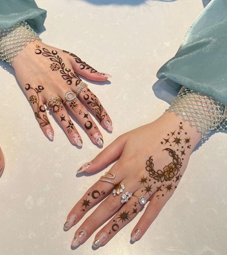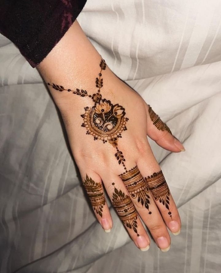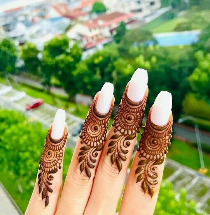 Minimal finger mehndi with floral strokes and fine vines is one of the biggest trends this year. It gives a neat and graceful appearance.