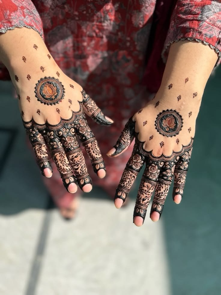 Heavy and detailed tikki with intricate patterns covering the full hand. Ideal for brides and wedding functions.