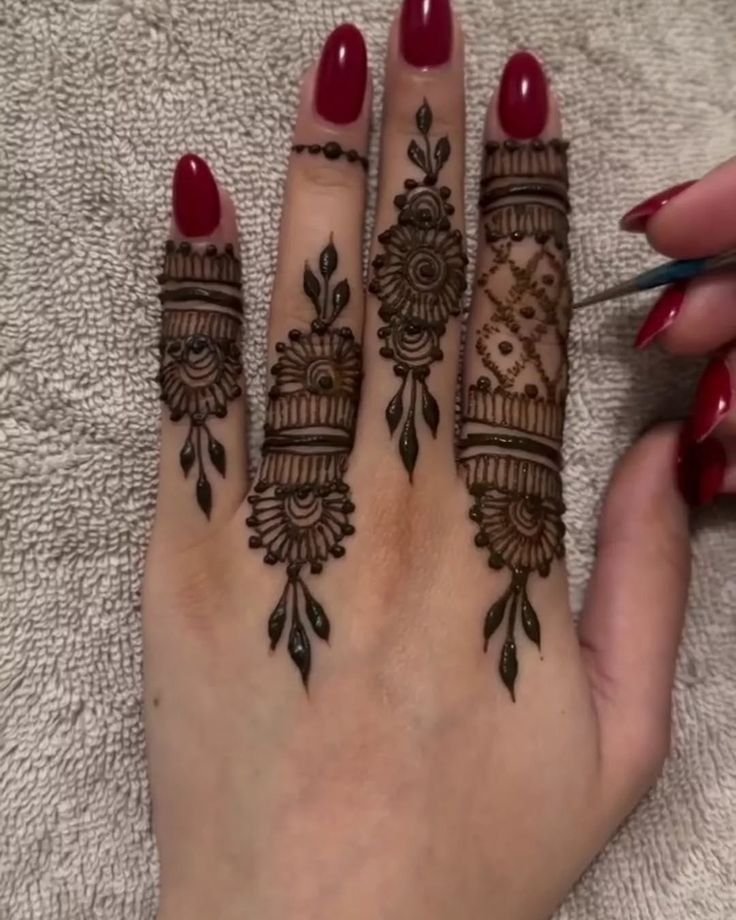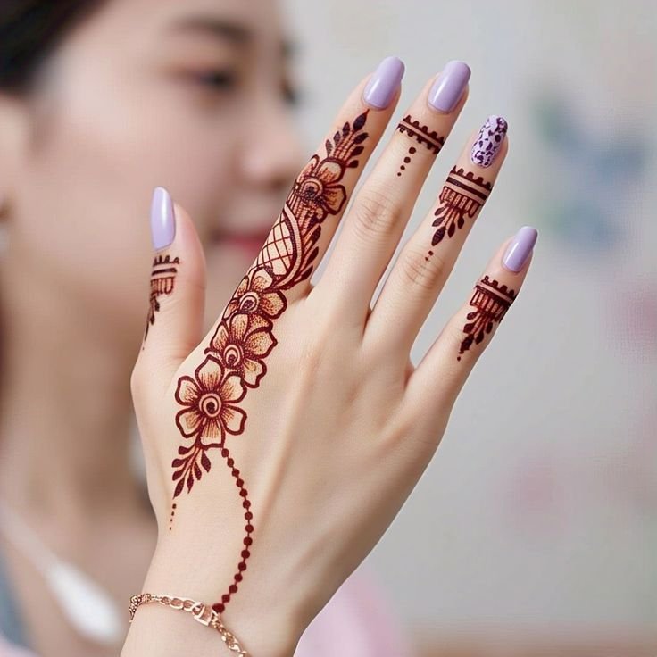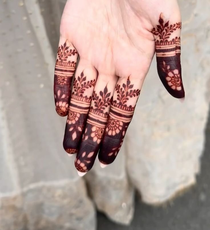 Royal finger mehndi design 2025 is one of the latest and most elegant trends for girls. These designs combine a royal and minimal touch that looks perfect for Eid, weddings, or any festive occasion. Simple yet classy, royal finger mehndi adds charm to every hand style.