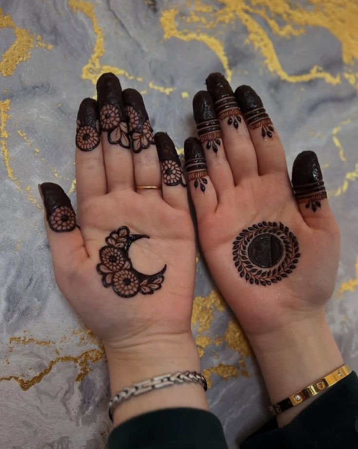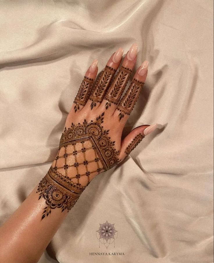 Use a mehndi cone with a fine tip for intricate front-hand patterns.