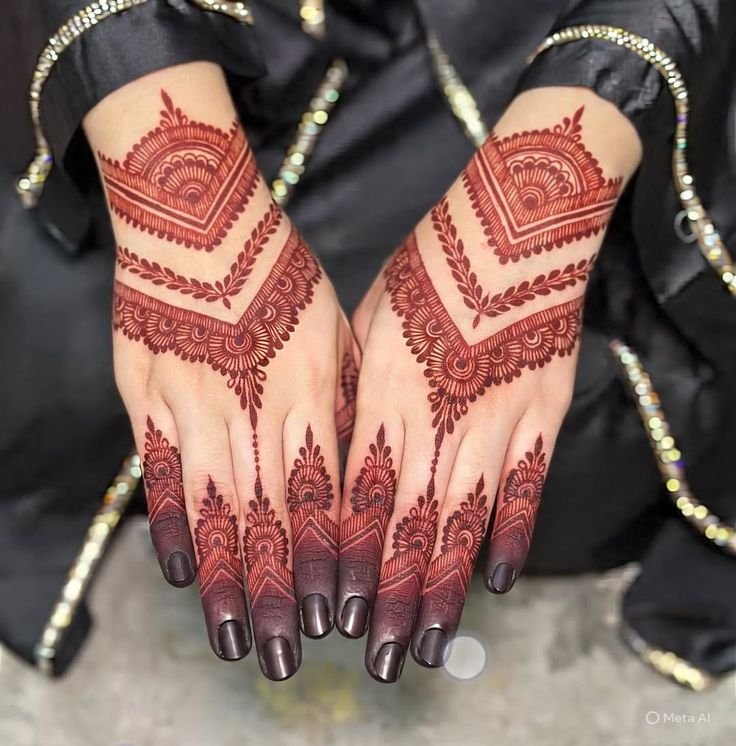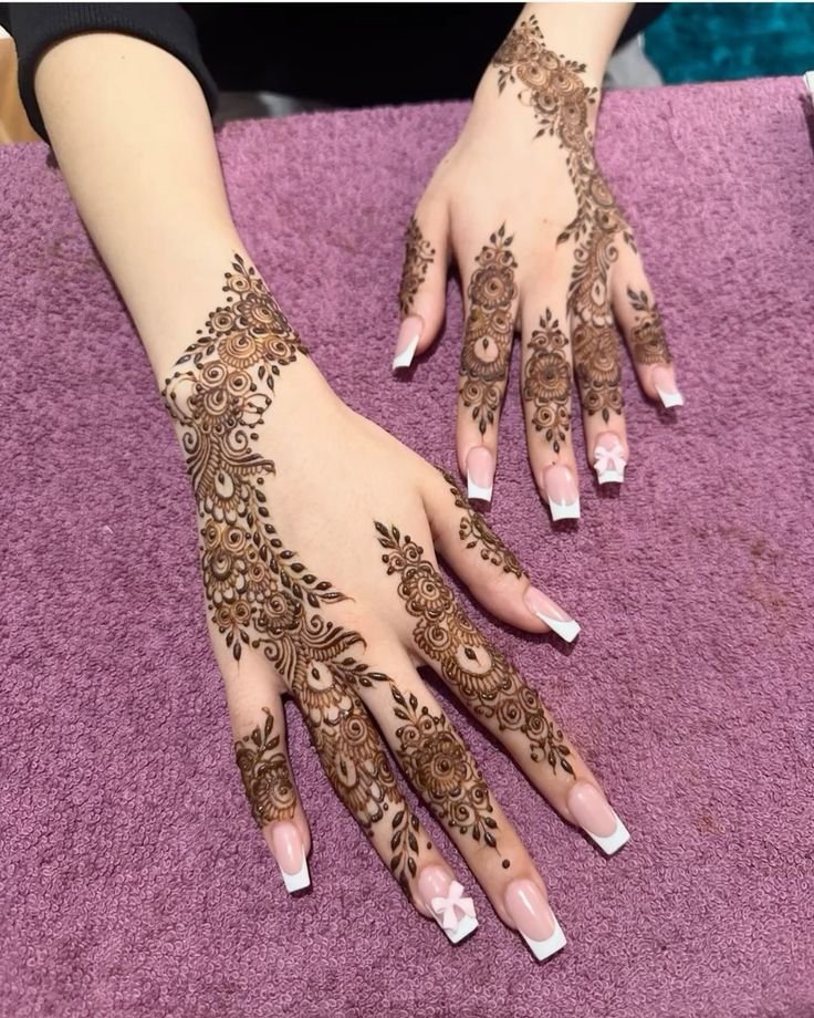 Back hand mehndi usually lasts 7–10 days, depending on care and quality of mehndi.