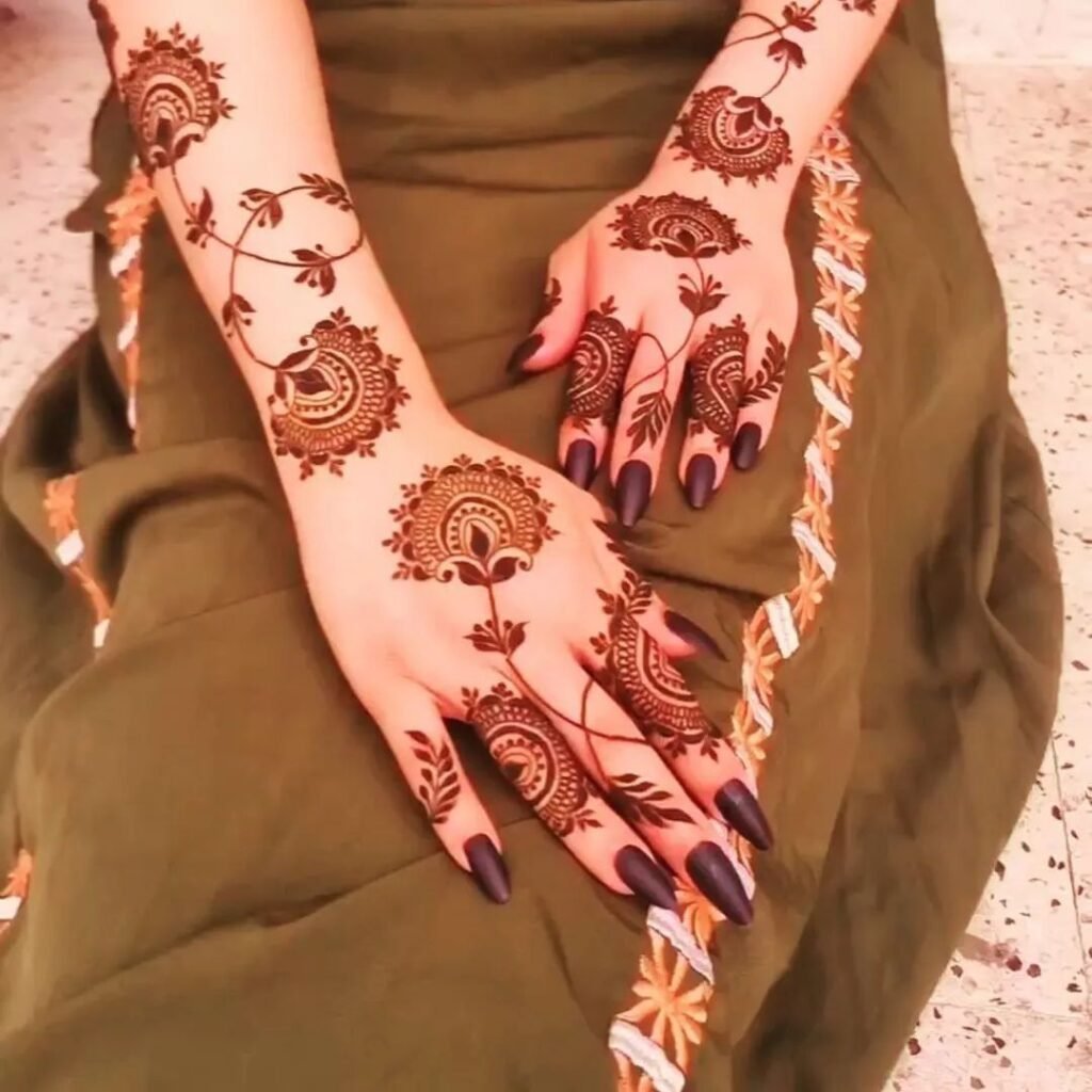 Simple fancy mehndi designs are perfect for girls who love a clean, stylish, and modern look without heavy patterns. These designs balance simplicity with a touch of elegance, making them ideal for weddings, Eid, parties, and casual functions. They are easy to apply, quick to dry, and look beautiful in photos, especially for Pinterest and Instagram.