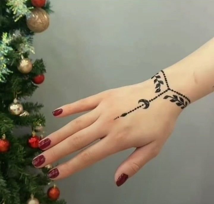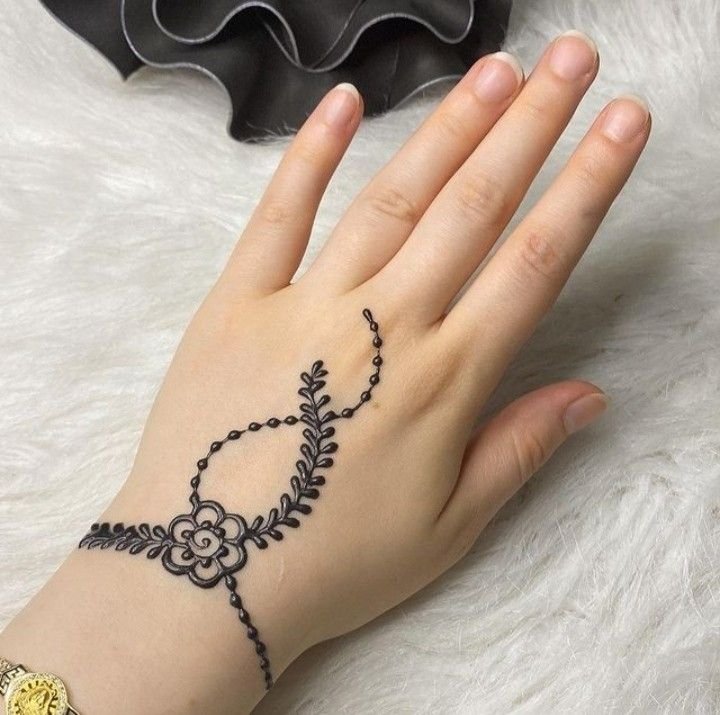 A thin bracelet‑like design around the wrist with tiny dots or flowers. Easy and adorable.