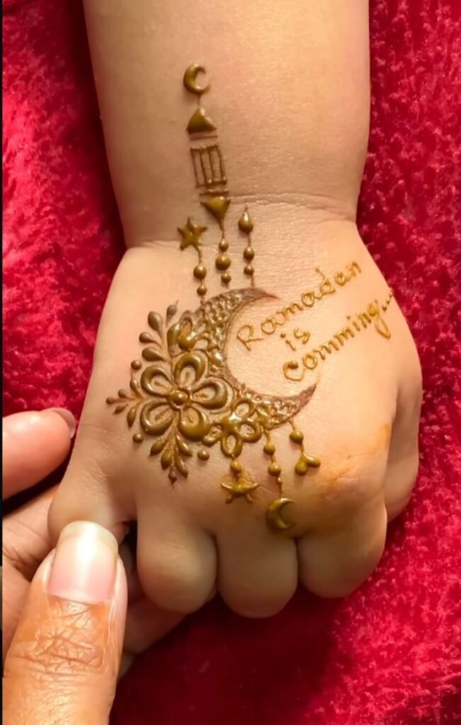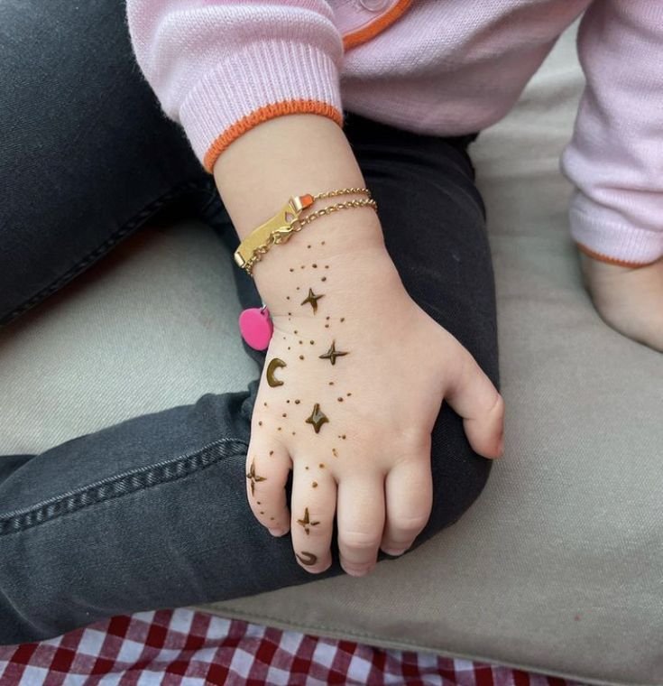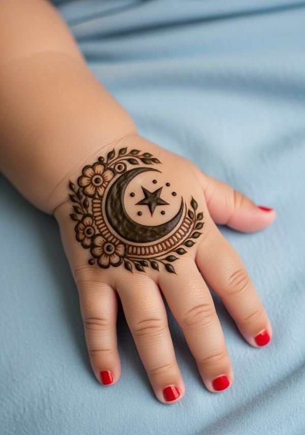 Simple mehndi designs for baby girls are perfect for adding a soft festive charm. With minimal patterns and cute elements, these designs keep little hands comfortable while looking absolutely adorable.
